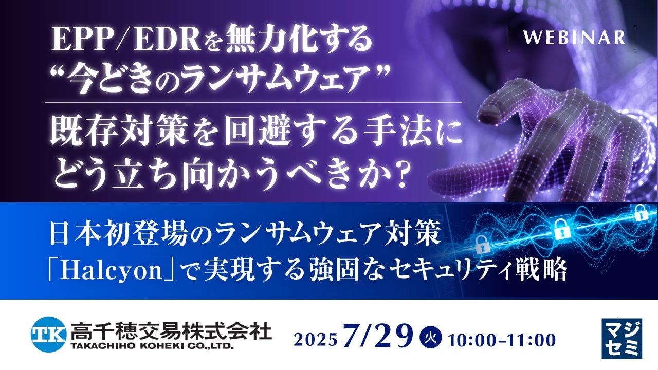 マジセミ株式会社は「EPP/EDRを無力化する“今どきのランサムウェア” 既存対策を回避する手法にどう立ち向かうべきか?」というテーマのウェビナーを開催します。