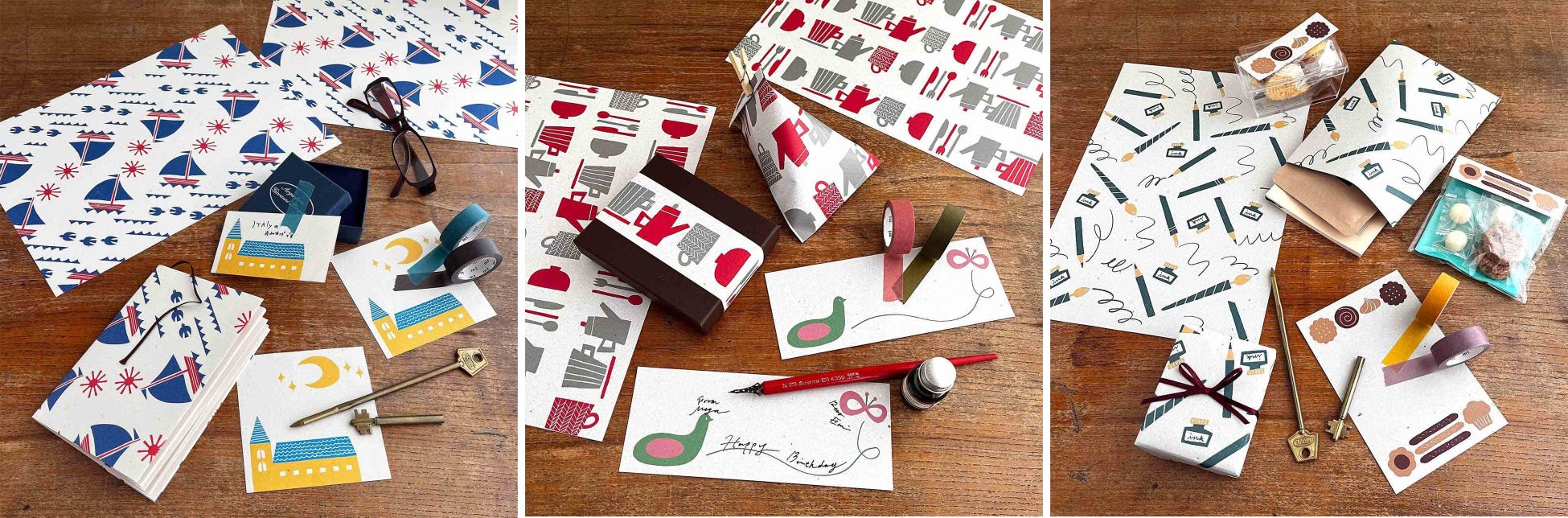 だれかの心を豊かにしてくれた古本たちから再生された紙は、「ミ三3研究室」によって「読みもの」から「紙もの」へと姿を変え、「読む」から「書く・包む・渡す」さらに「贈る」へ。用途は自由に広がりました。かつて本だった歴史を想像しながら、あなたらしい楽しみ方を見つけてくださいね。