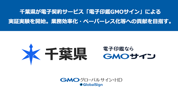 GMOグローバルサイン・ホールディングス株式会社(代表取締役社⻑:⻘⼭ 満 以下、GMOグローバルサイン・HD)は、2023年2月1日(水)より、千葉県(知事:熊谷 俊人 以下、千葉県)が電子契約サービス「電子印鑑GMOサイン」を活用した電子契約の実証実験を開始することをお知らせいたします。