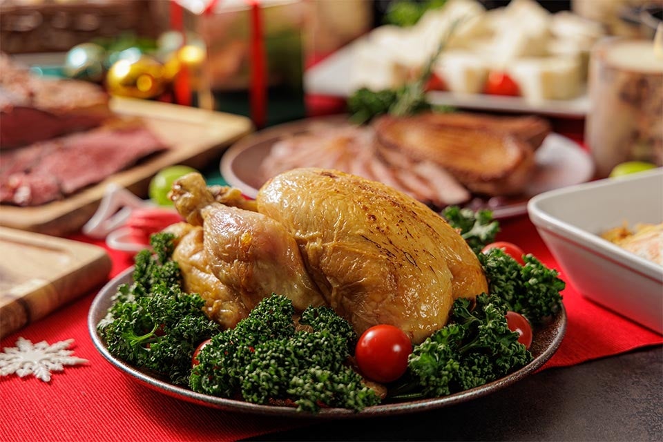 サンタも思わず笑顔になる、クリスマスだけのごちそうが勢揃い!ステーキ、ローストチキン、キラキラデザートなど、みんなでワクワク楽しめるディナーブッフェ