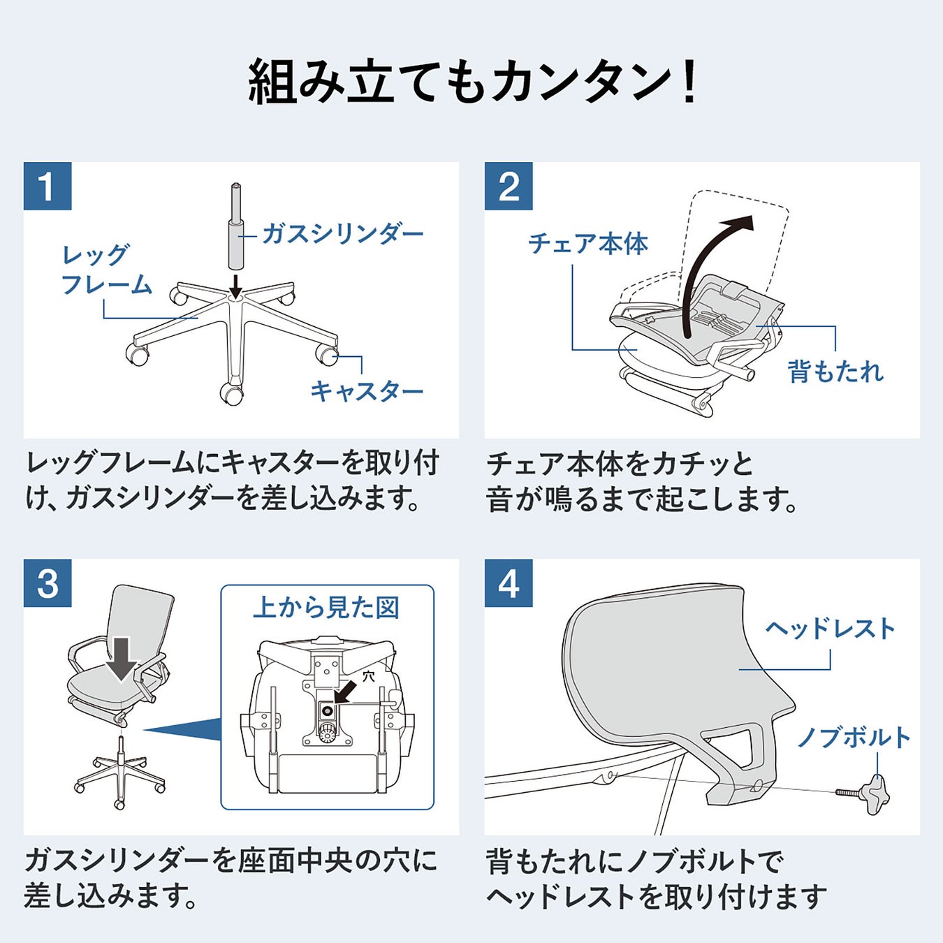 本製品は、ワンタッチで背もたれを折りたたんでコンパクトサイズにすることが出来るメッシュチェアです。