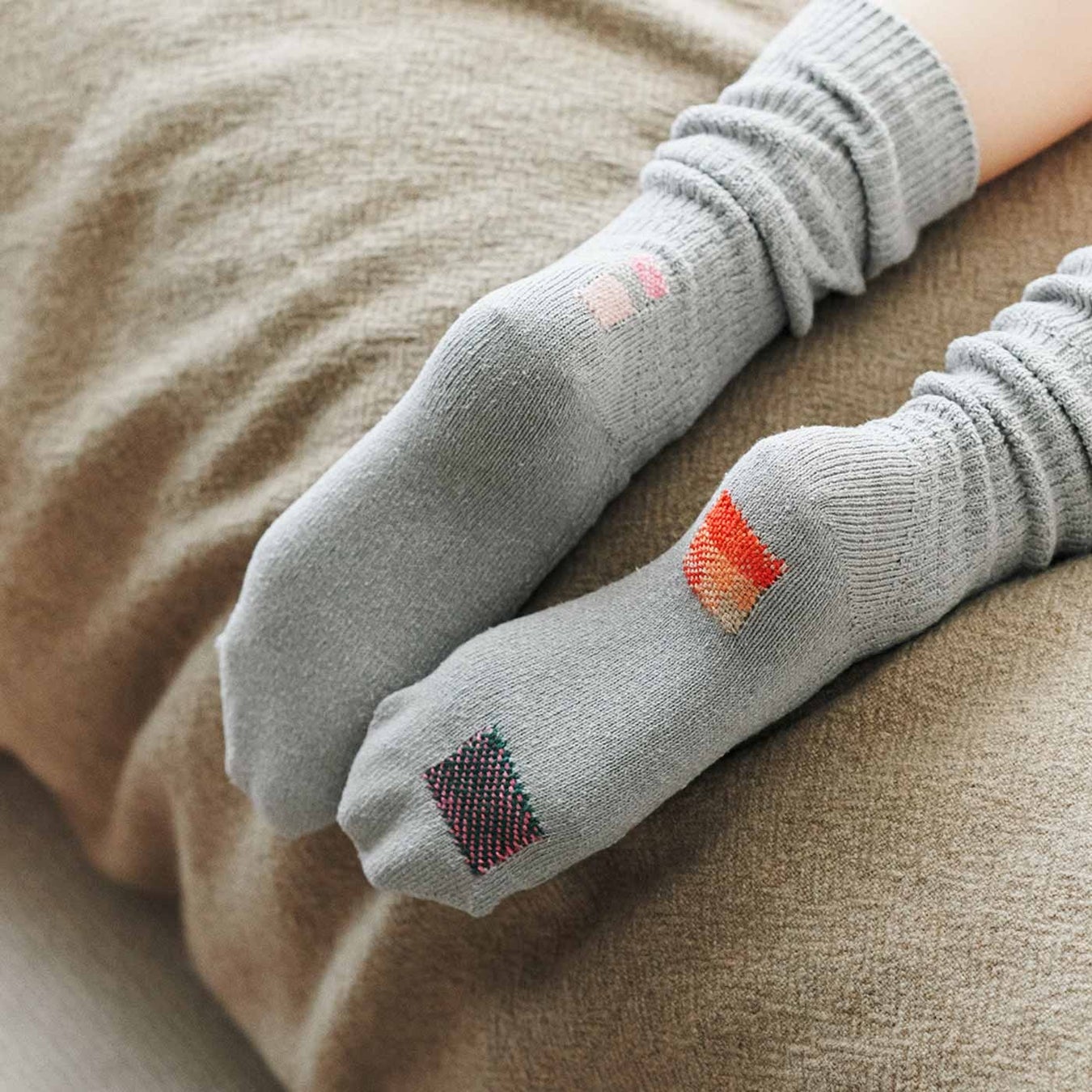1回に約3.5㎝正方の織り模様を4つ作れる図案と作り方説明書、材料が届きます。一緒に届く筒状のニット地に専用織り機を使ってサンプラーを作ったら、残りの糸で愛用の靴下など実際に繕いができます。お気に入りのニット帽やウエアをダーニングでアクセサリーのようにデコレーションすることも。ポケットみたいに織りつけることもできます。