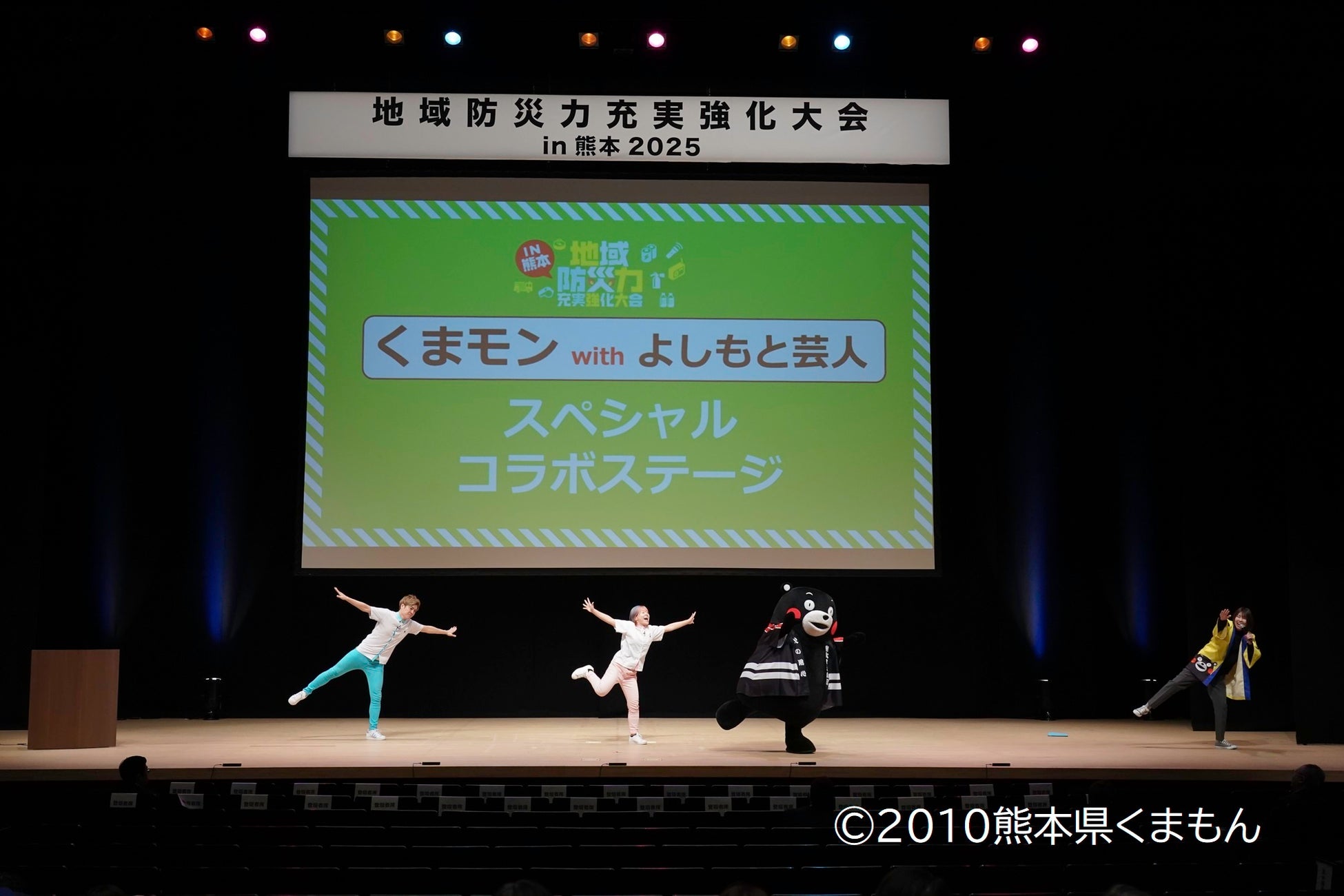 くまモンステージ企画「くまモンwithよしもと芸人 スペシャルコラボステージ」では熊本県PRマスコットキャラクターのくまモンも登場し、Everybodyとアドリブで熊本弁バージョンでお馴染みの「クリティカルヒット」のネタを披露しました。さらにくまモン体操も披露しキレキレのダンスで会場を盛り上げました。