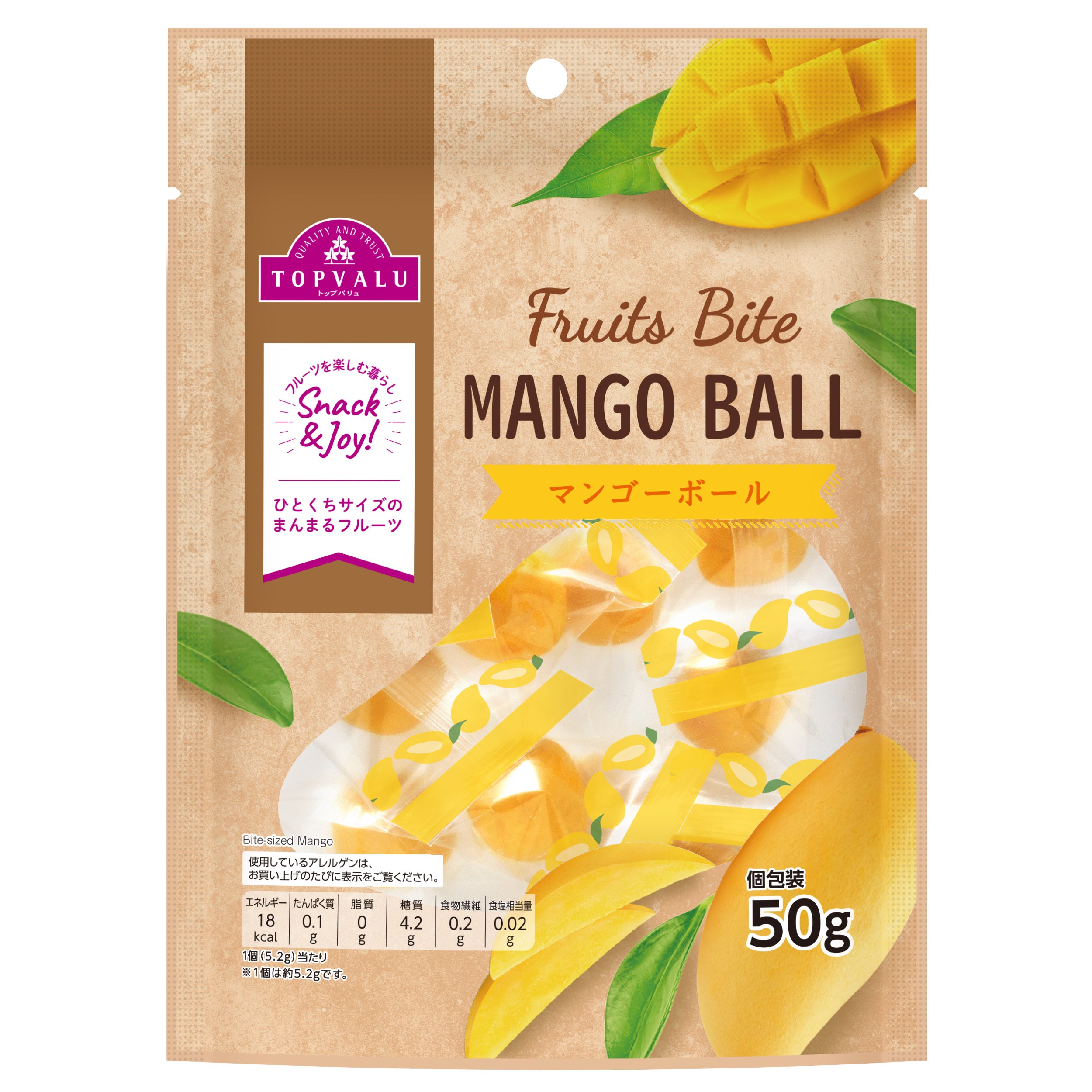 [商品名]トップバリュ Joynuts キャラメルマキアート、トップバリュ Fruits Bite マンゴーボール