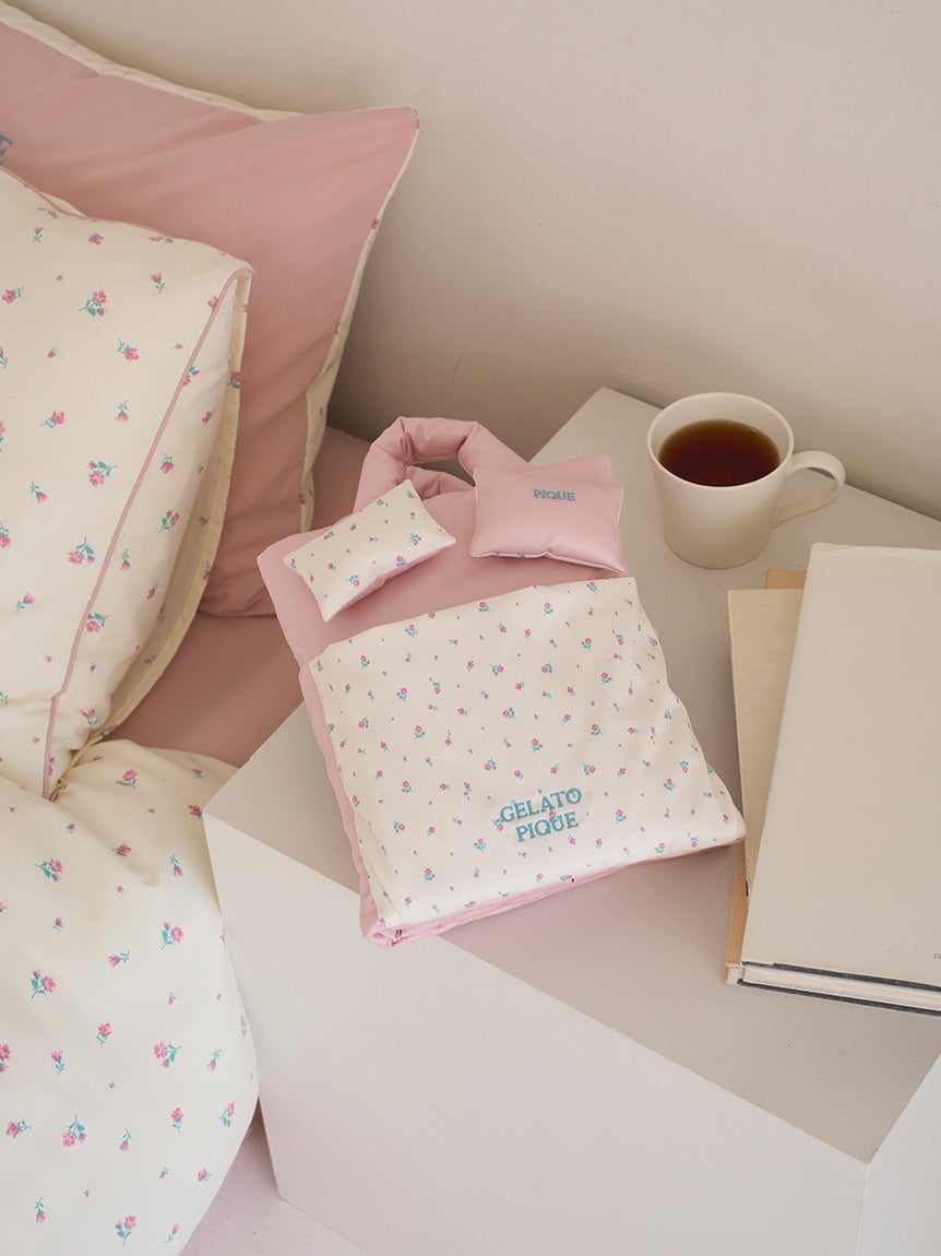 ふんわりやわらかなタオルケットや寝具とリンクしたデザインのベッドサイドポーチも展開。