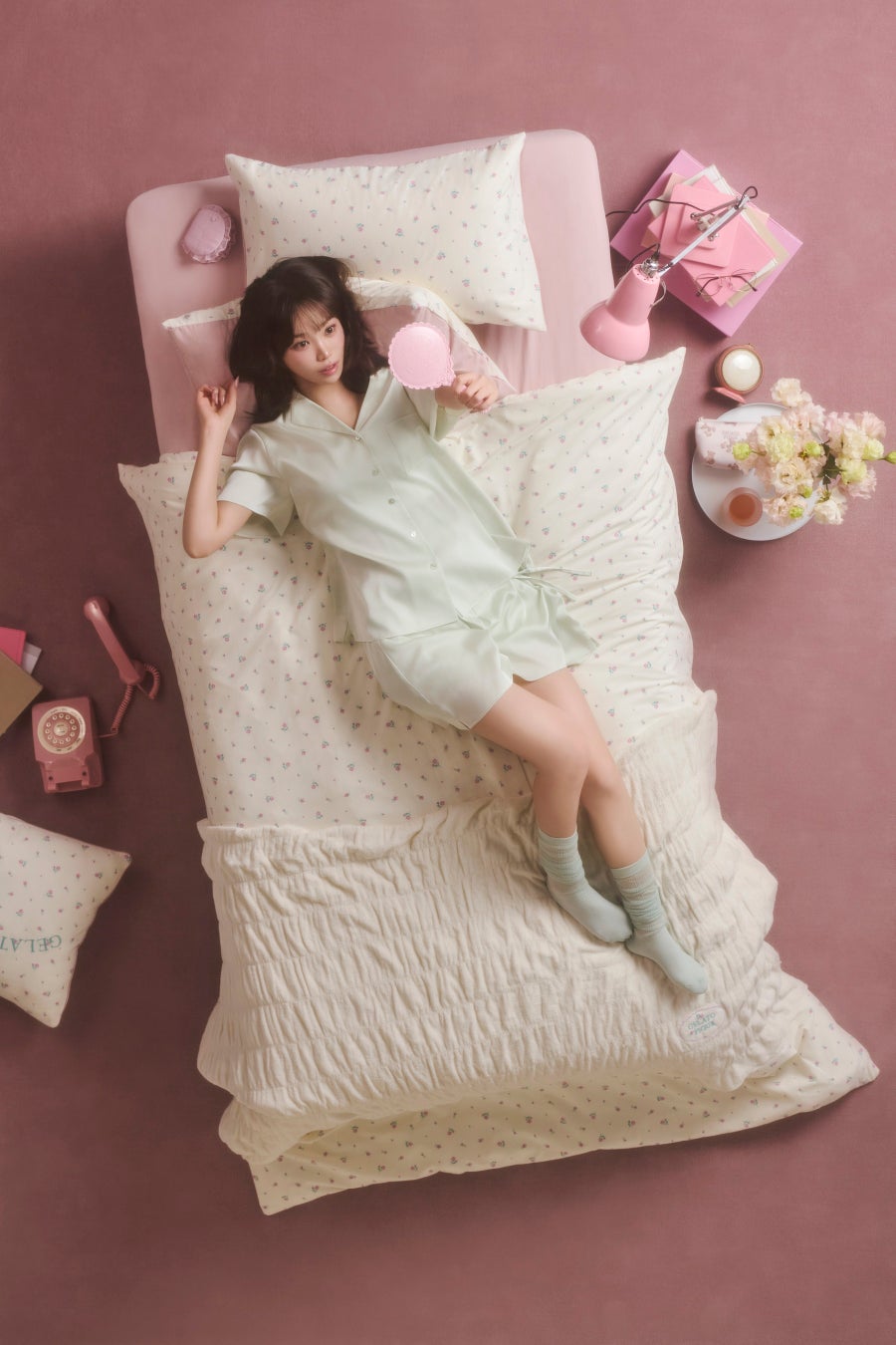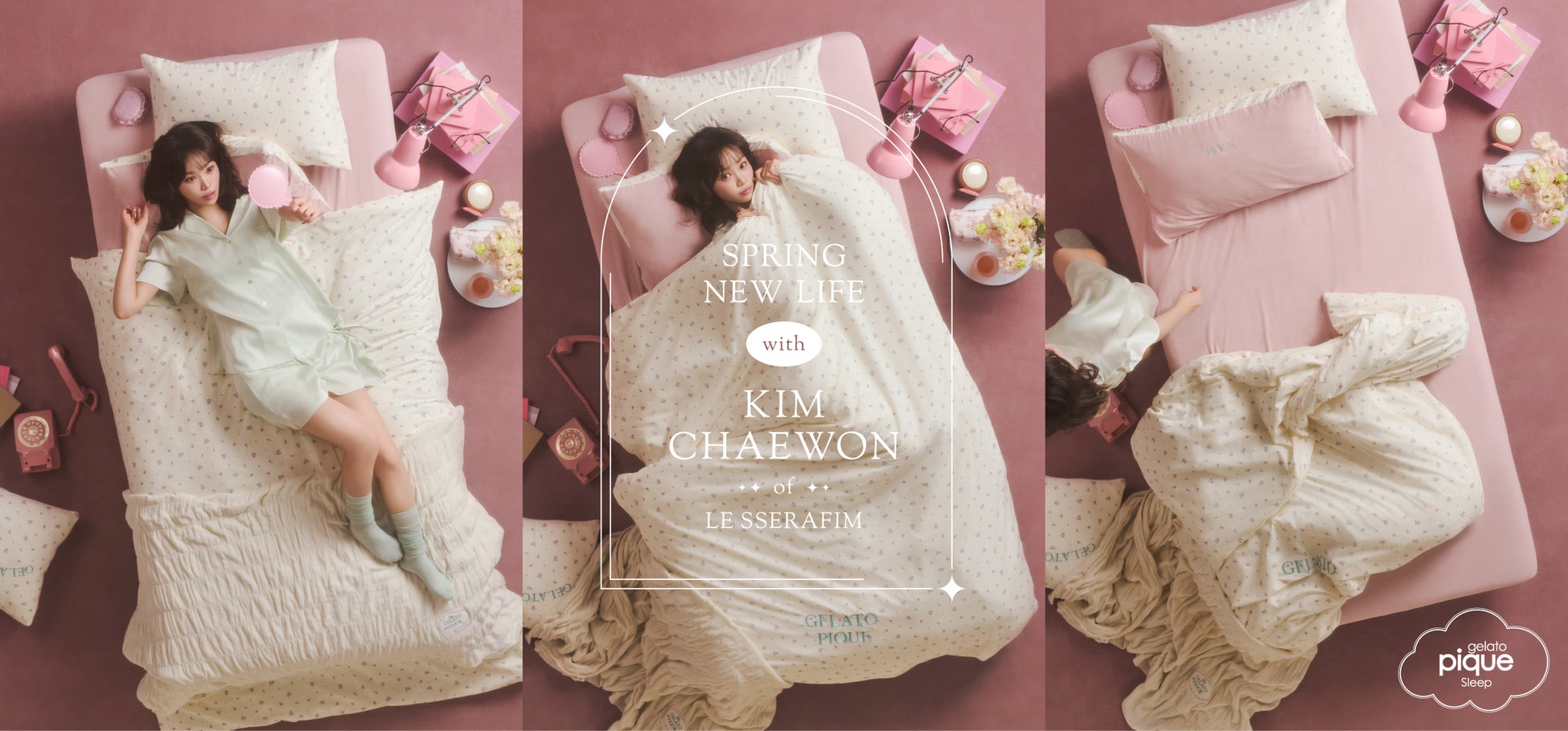 【gelato pique (ジェラート ピケ)】寝具ラインから「LE SSERAFIM(ルセラフィム)」KIM CHAEWONが彩る新作"新生活"シリーズを公開<1月27日(火)正午>
