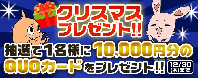 同時開催で抽選で1名様に10,000円分のQUOカードが当たるTwitter RTキャンペーンを実施!!