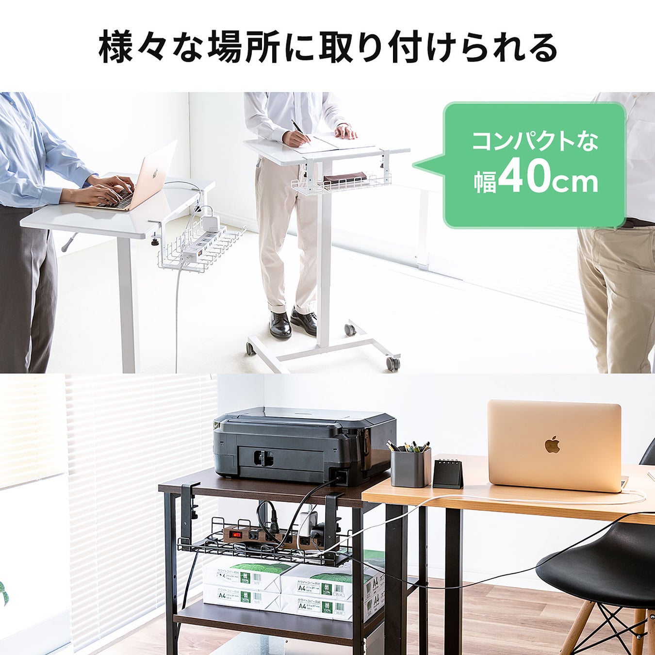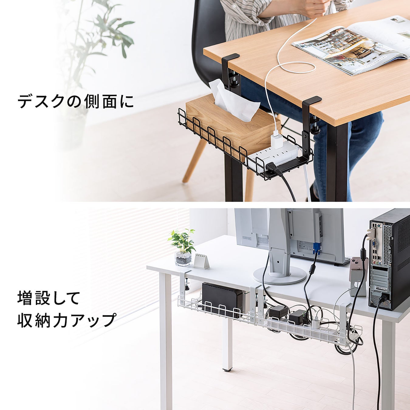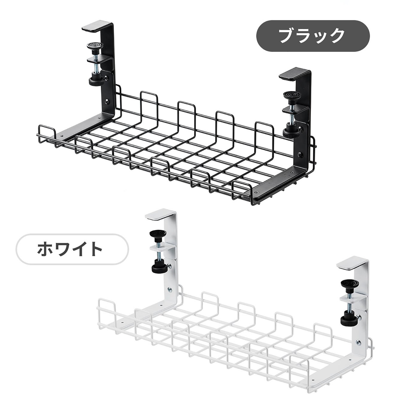 ケーブルトレー 幅40cm クランプ固定 ワイヤータイプ ケーブルオーガナイザー ケーブル収納 配線受け 電源タップ ブラック ホワイト
