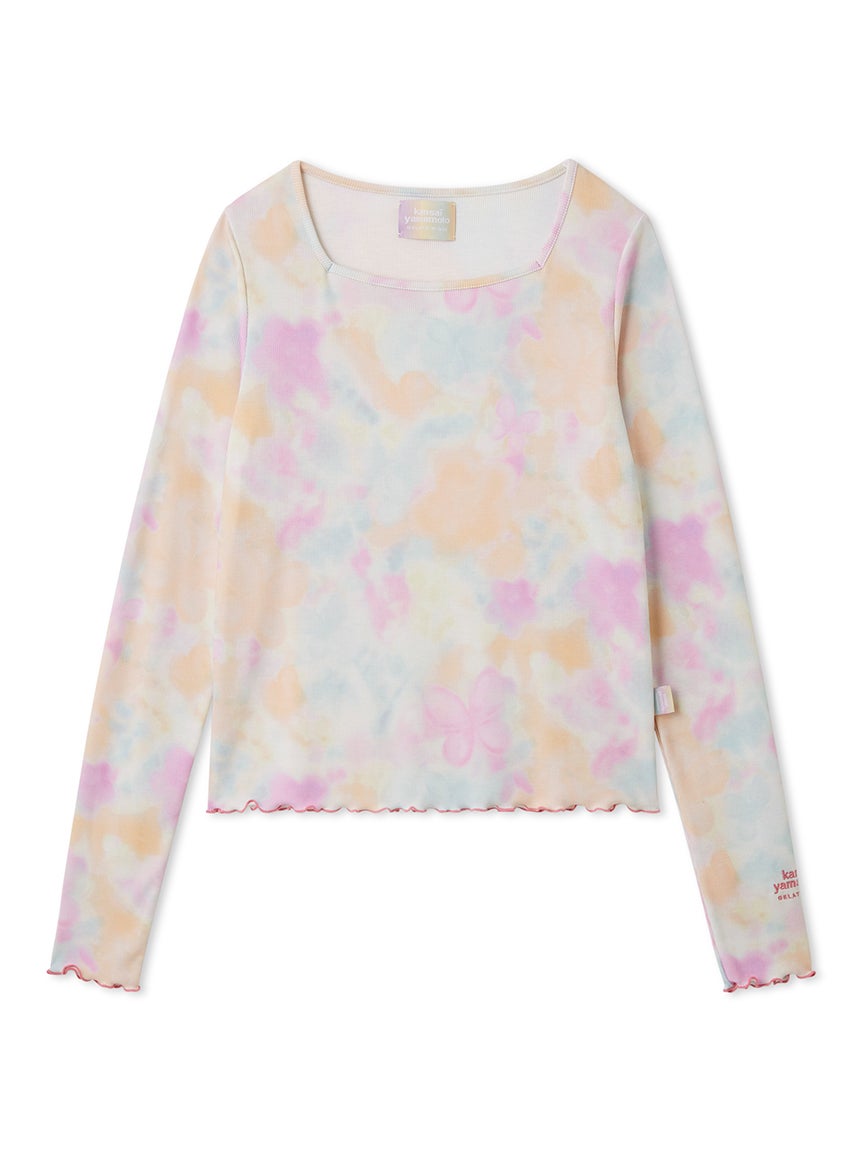 上品かつフェミニンな雰囲気を纏うカットソーシリーズが登場。花や蝶をモチーフにしたタイダイ柄や、コレクションテーマである「LOVE IS COLORFUL」のロゴと和菓子をイメージしたグラフィックのラインアップ。kansaï yamamotoの華やかな色彩と、ジェラート ピケらしいやわらかなカラーリングで表現しています。