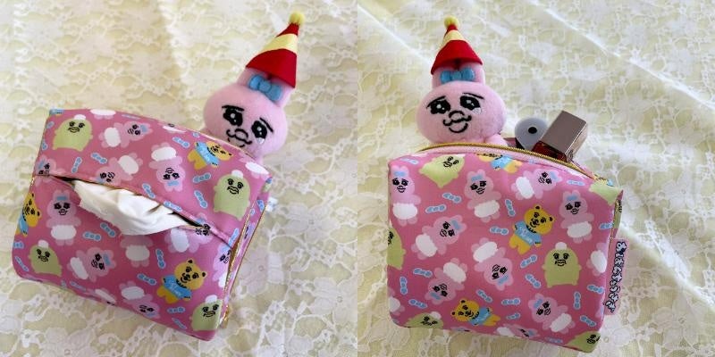 バニティポーチに、ヘアバンド、ミニコスメポーチ、マスコットが入った状態でのお届けです!