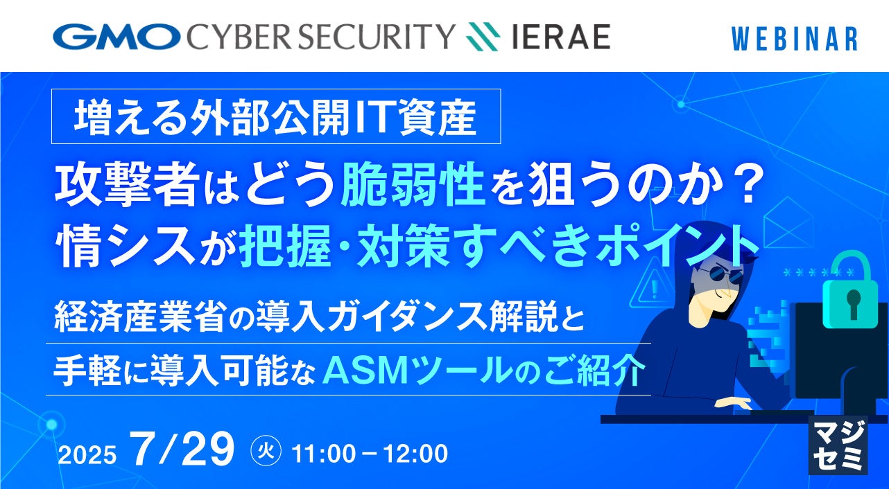 マジセミ株式会社は「増える外部公開IT資産、攻撃者はどう脆弱性を狙うのか? 情シスが把握・対策すべきポイント」というテーマのウェビナーを開催します。