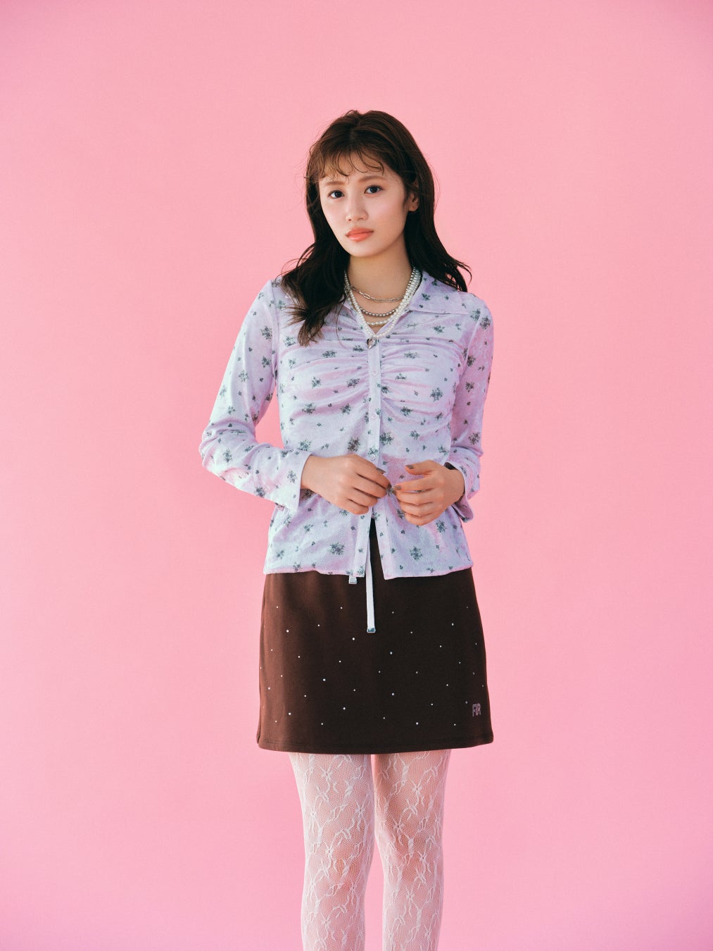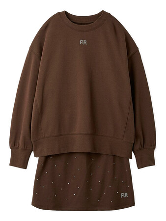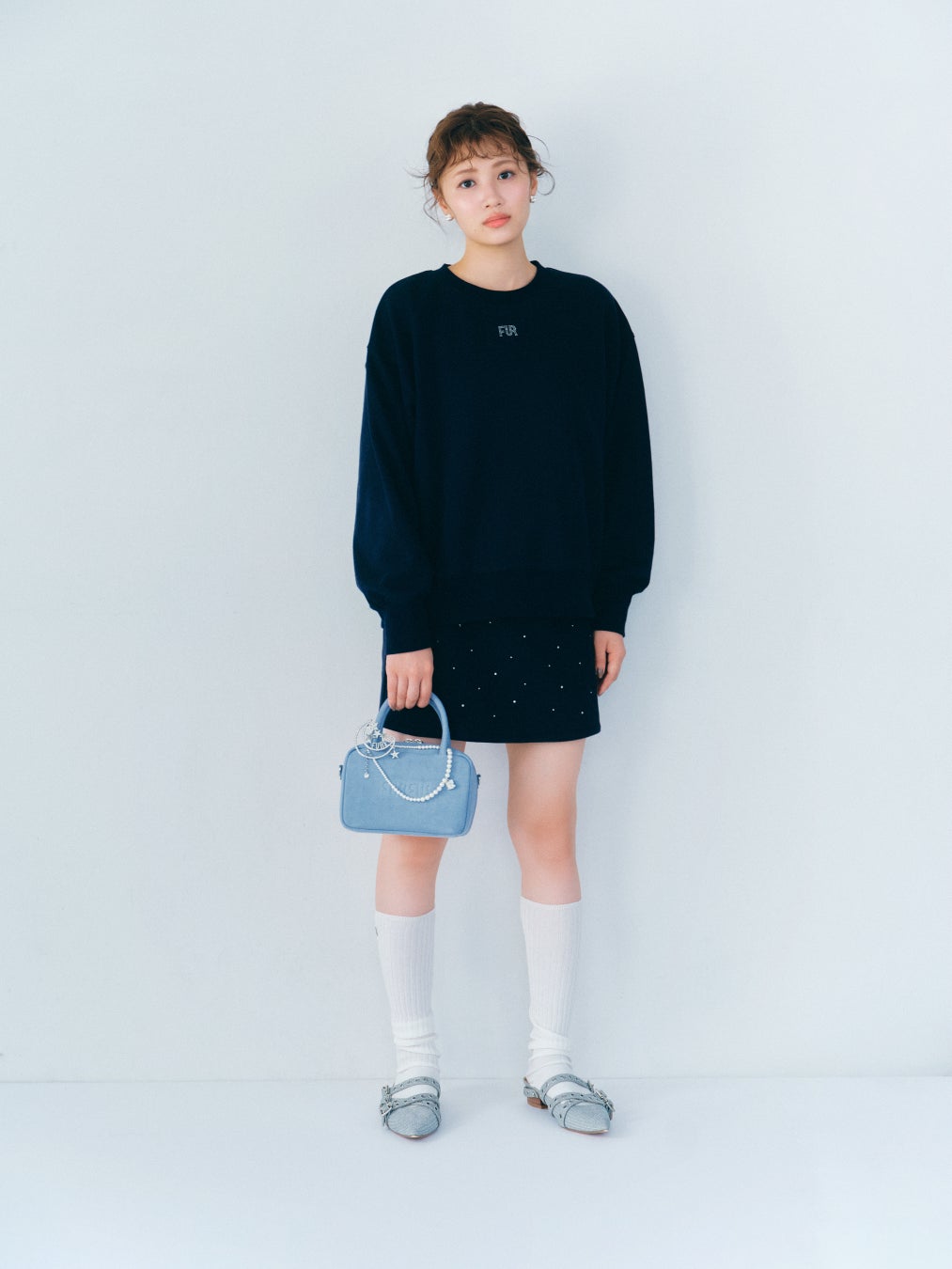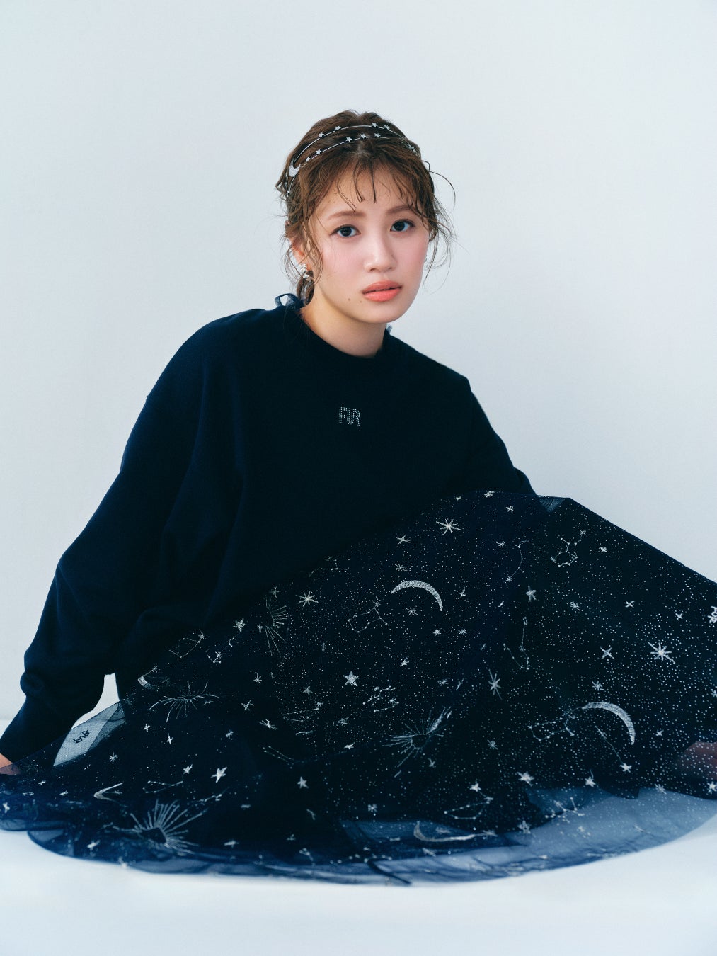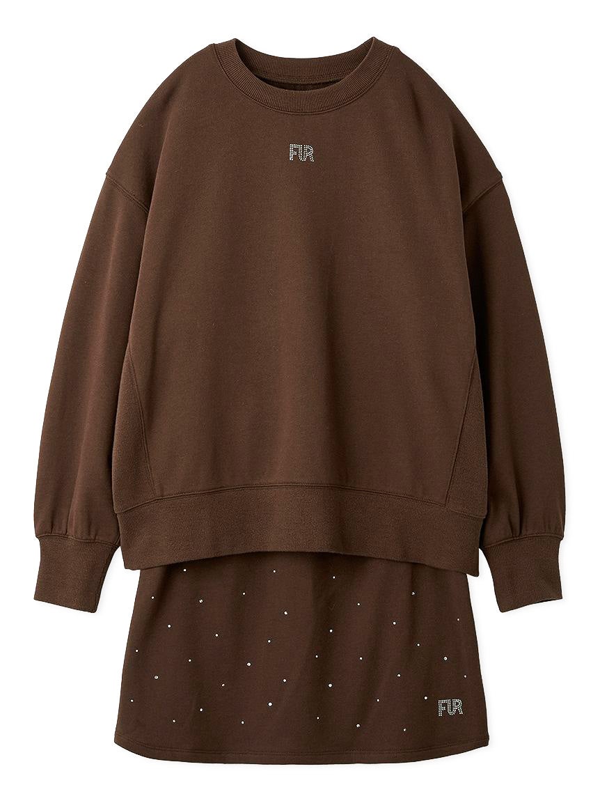 クリスタルを散りばめた、程よい丈感で大人も着やすいスウェットミニスカートがセットになった特別なアイテム。