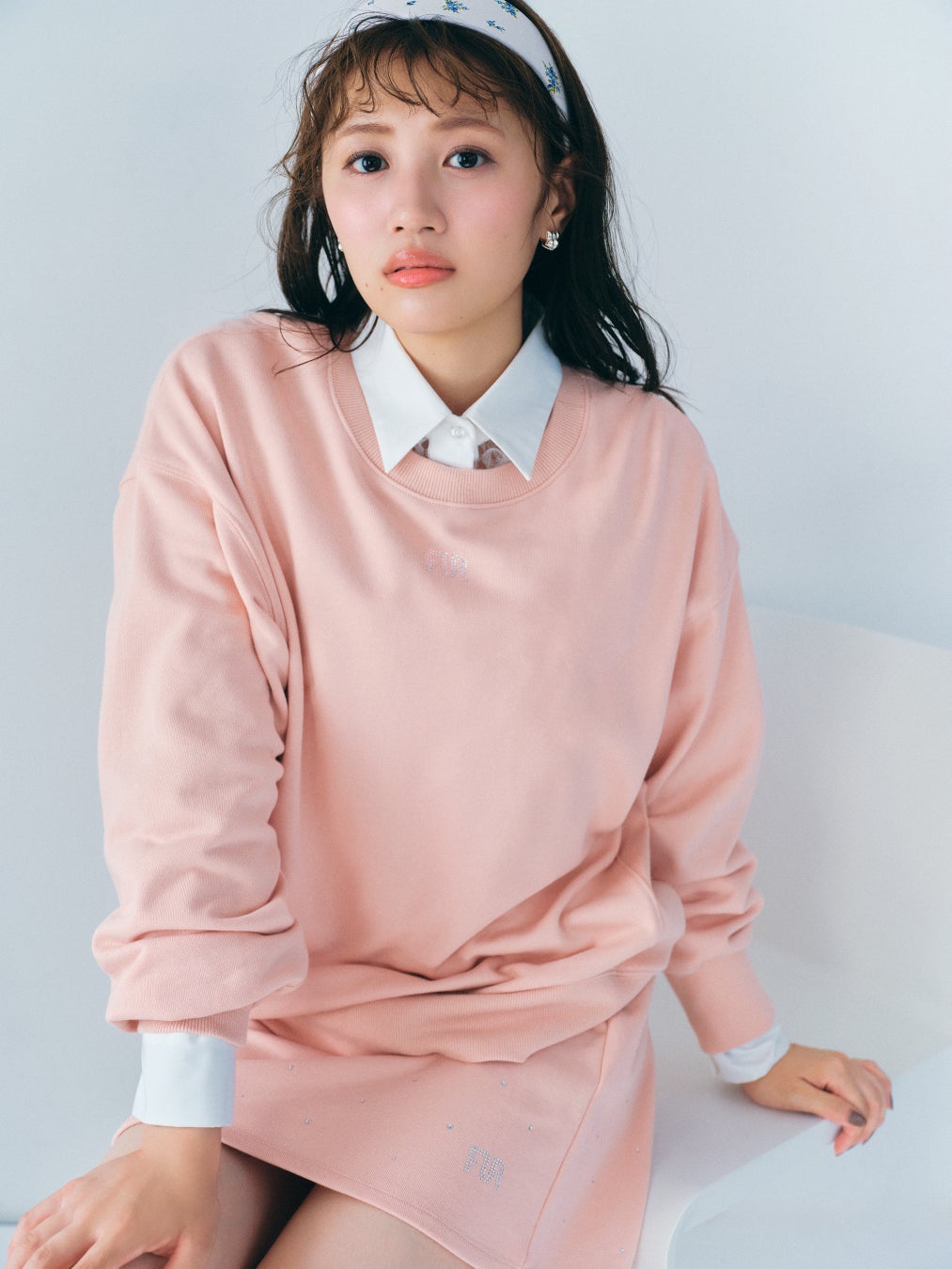 クリスタルを散りばめた煌びやかかつリラクシーな着心地を追求した4色展開のスウェットトップスとミニスカートのセットアップがスペシャルプライスで登場