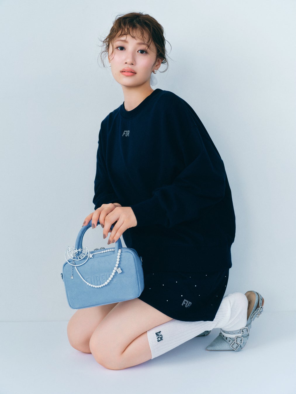 アイコニックな”FUR”のクリスタルロゴが施されたトップスはワイド感のあるゆったりとしたシルエットで、リブ編みで切り替えた袖のデザインで着心地にもこだわりました。
