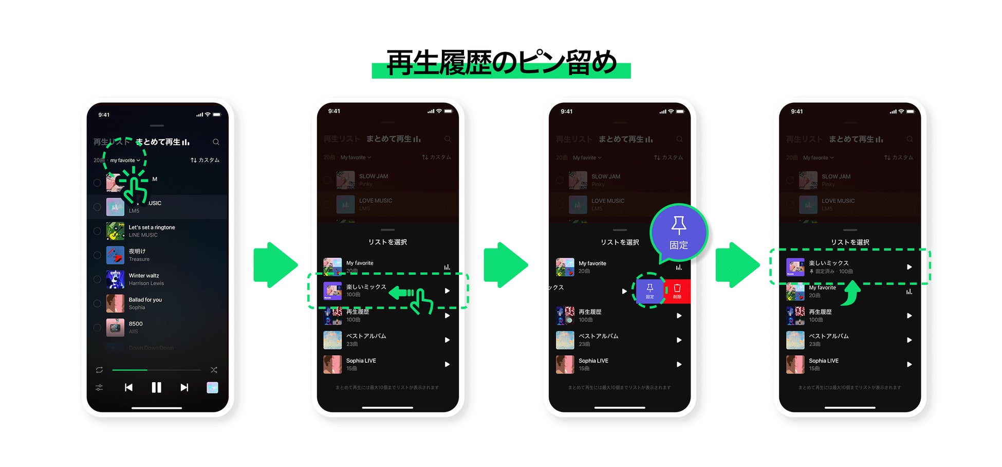 - 最大5つの再生履歴をピン留め可能に!聴きたい音楽を瞬時に再生
