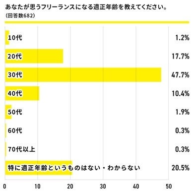 フリーランスとして独立するにあたって、“ベストなタイミング“を慎重に考える人もいるでしょう。フリーランスになる適正年齢について会社員に考えを聞くと、「30代」が最多に。一方で、「適正年齢というものはない」という意見も数字を伸ばしました。