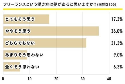 また、会社員にフリーランスという働き方に夢があるかと聞くと、「とてもそう思う」「ややそう思う」という回答の合計が過半数を超える結果になりました。