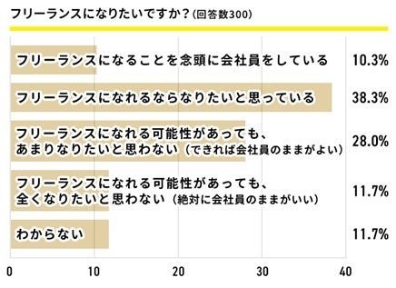■「フリーランスになりたい」会社員が約半数。「夢がある」とも回答