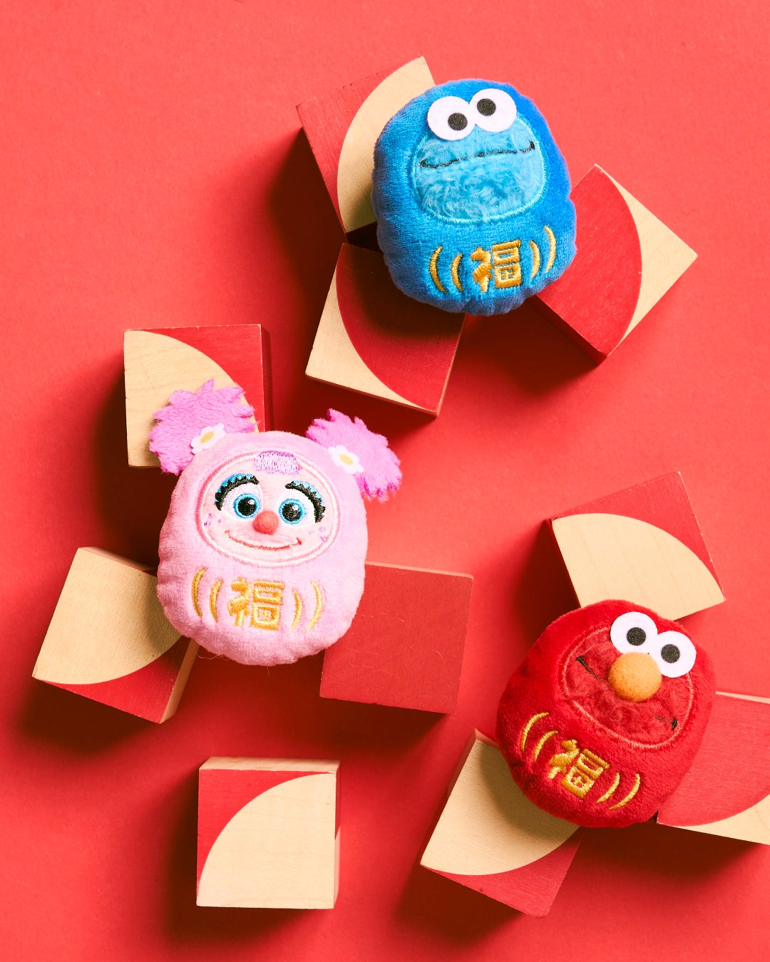 エルモ、クッキーモンスター、アビーが日本の縁起物である“だるま”になりきったぬいぐるみバッジ。コロンとした丸みのあるフォルムが愛らしいアイテムです。フロントには「福」の刺繍をあしらい、持っているだけでハッピーな気分になれるデザインに仕上げました。