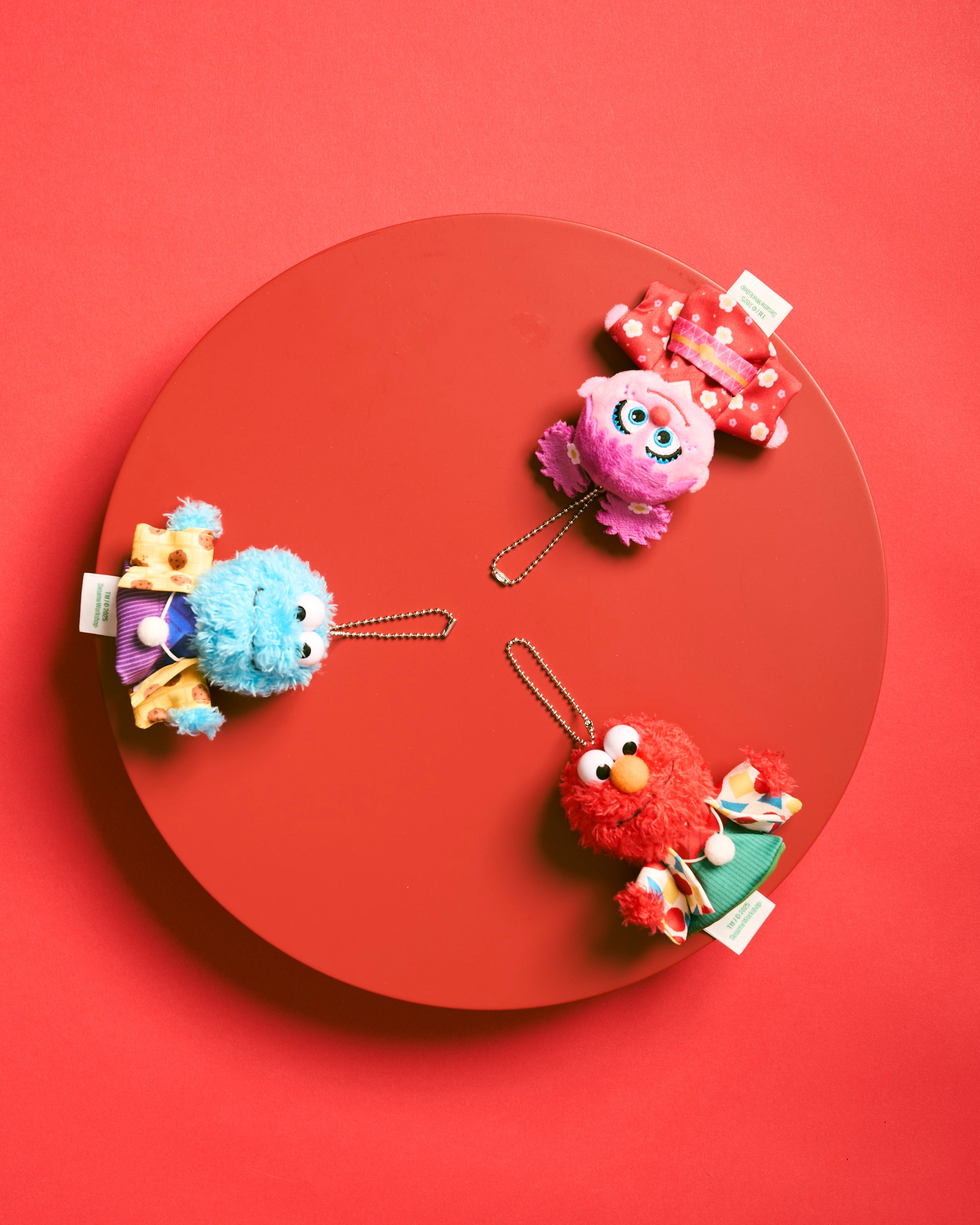 エルモはカラフルな幾何学模様をちりばめた元気いっぱいのデザイン、クッキーモンスターは大好物のチョコチップクッキー柄をあしらったユーモアたっぷりのデザイン、アビーは梅の花をモチーフにした華やかな和柄デザインで、それぞれの個性と魅力をポップに表現しました。