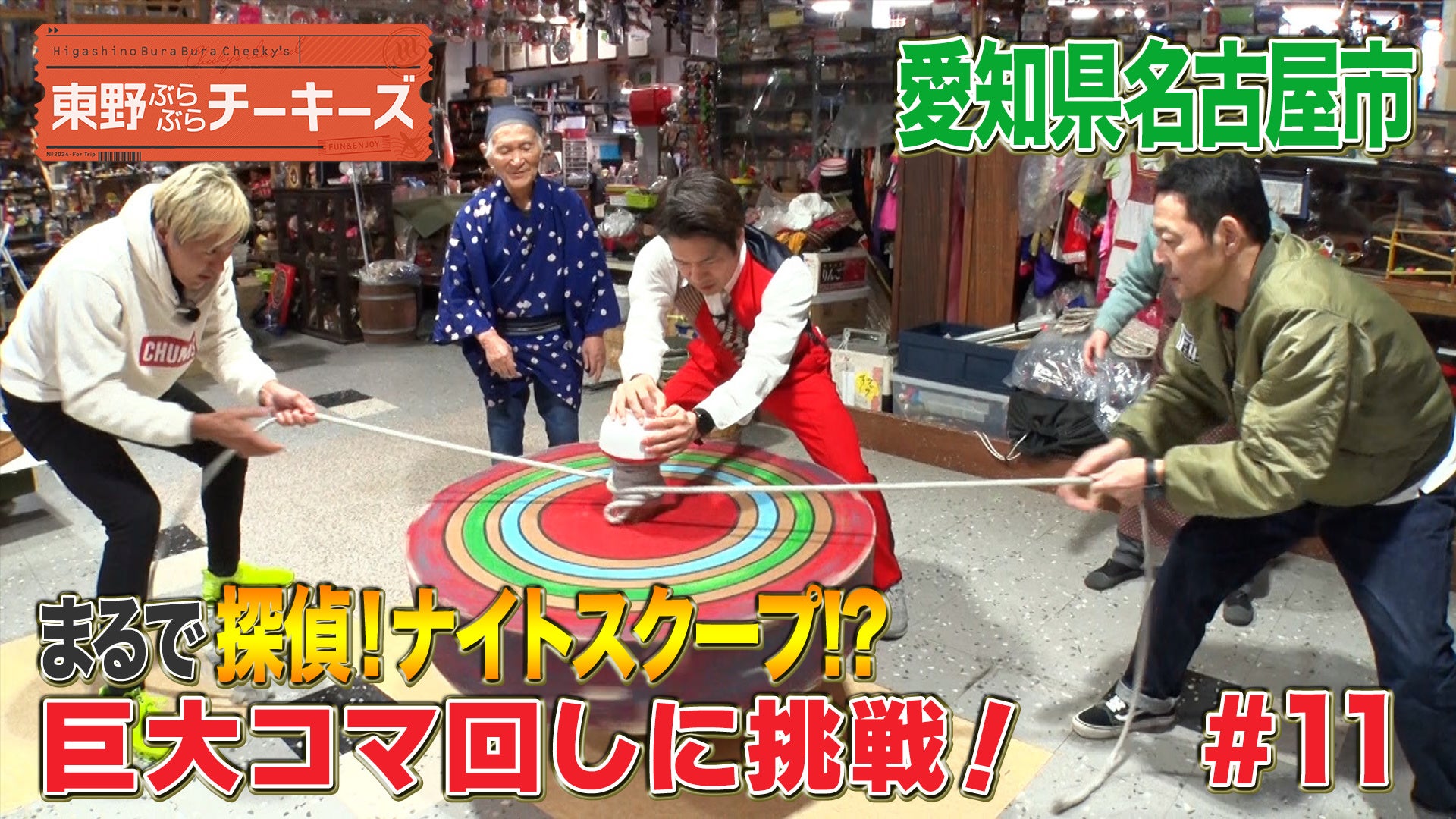 続いては「日本独楽博物館」を訪れます。そこにはキャラクターの濃い館長が! 館長のコマづかい、妙技に一同驚愕! ラストには、全員で巨大コマ回しに挑戦します。