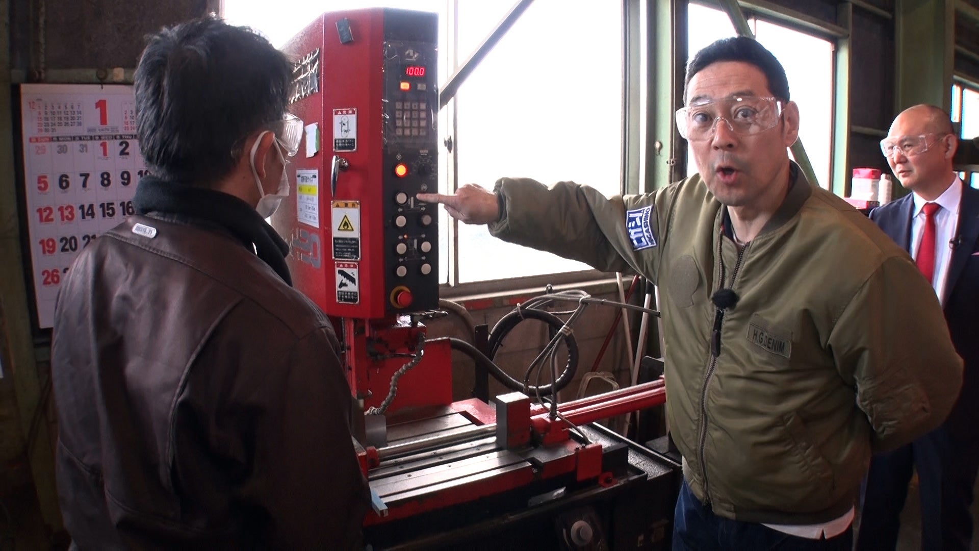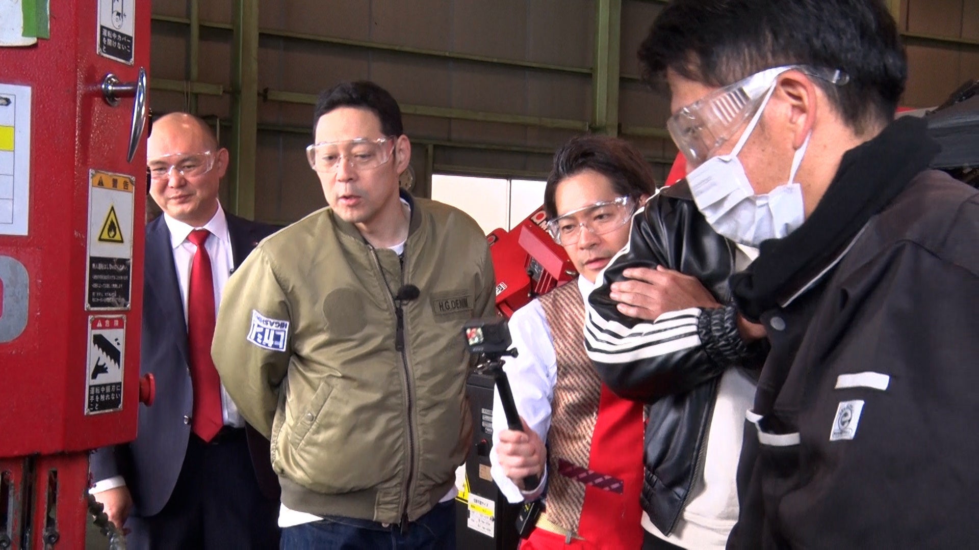 自動車や医療機器など、身近な機械に使われる金属を加工・販売するタカギスチールでは、どんなものが作られているのか。一同は興味深く見学していきます。そんななか、社長の意外な趣味がクイズに! その答えに東野も真栄田も驚きを隠せません。