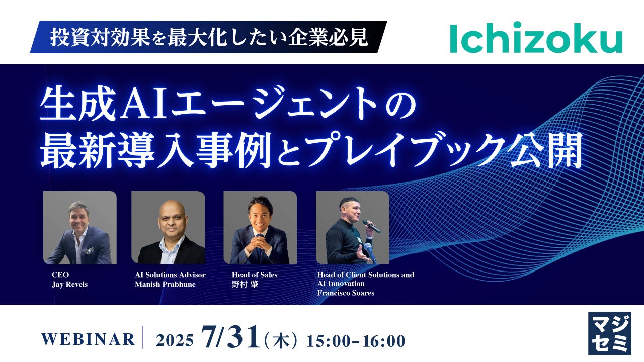 マジセミ株式会社は「【投資対効果を最大化したい企業必見】生成AIエージェントの最新導入事例とプレイブック公開」というテーマのウェビナーを開催します。