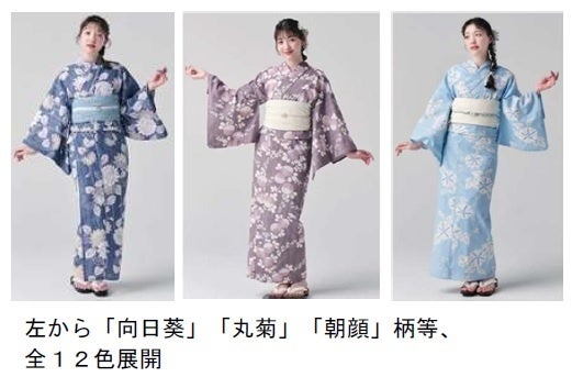 花火大会や夏祭りの再開で高まる需要にお応えし、店頭にてゆかたの展開を拡大します。今年は、くすみカラーのゆかたにトレンドの兵児帯(へこおび)を付け、カジュアルかつ上品な着こなしがかなうゆかたのセットを品揃え拡充します。トータルコーディネートが簡単にできて接触冷感、吸水速乾機能付です。さらに洗濯機で洗えます。