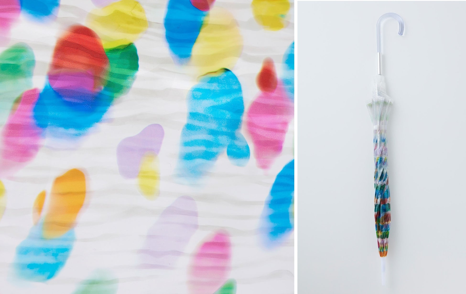 青森の四季を感じられる色彩の豊かさが魅力の「津軽びいどろ」から、青森の美しさを表現した2種類のデザインをセレクト。ビニール傘の透明感をガラスに見立てて、繊細かつ大胆に再現しています。