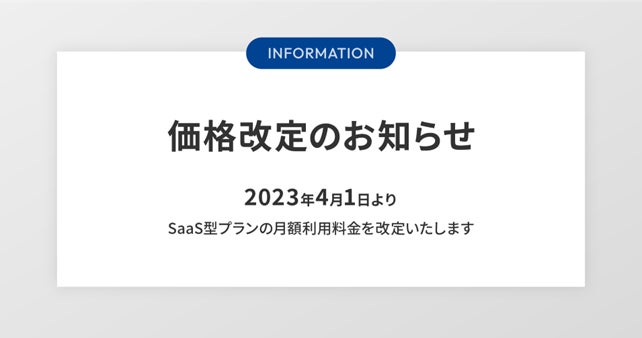 このような事情から、4月1日(土)より、ご利用料金を改定することとなりました。今後も、コスト削減に努めるとともに、安心・安全なシステムを継続してご利用いただけるよう、インフラの整備や、機能開発、サポート体制の拡充に努めてまいりますので、何卒ご理解賜りますようお願い申し上げます。