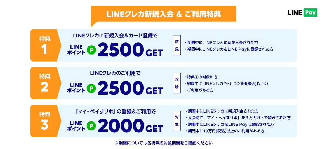 LINEクレカの新規入会と条件達成で、LINEポイント最大7000ポイントプレゼント