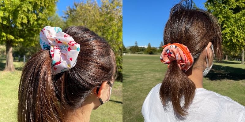 見た目はシュシュなのに、ポケット付きで小銭やロッカーの鍵などを収納できます。