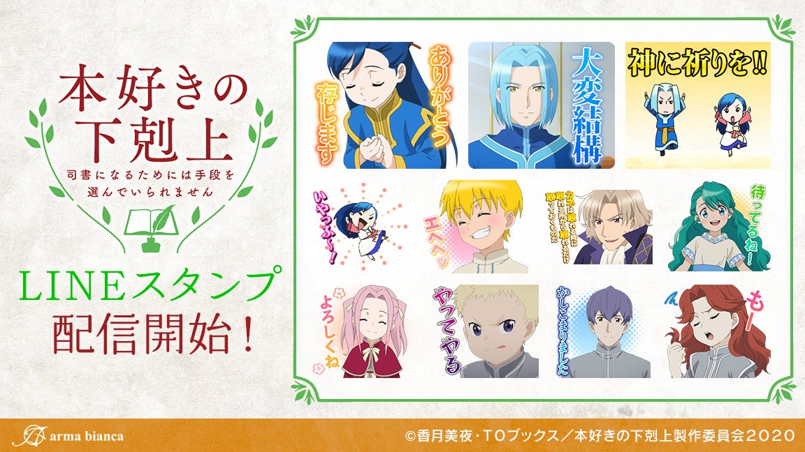 株式会社アルマビアンカは『本好きの下剋上』のLINEスタンプを配信いたします。