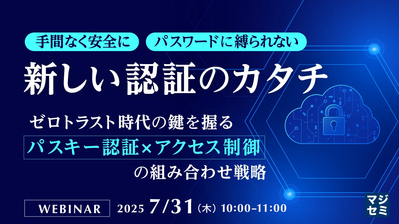 マジセミ株式会社は「手間なく安全に パスワードに縛られない、新しい認証のカタチ」というテーマのウェビナーを開催します。