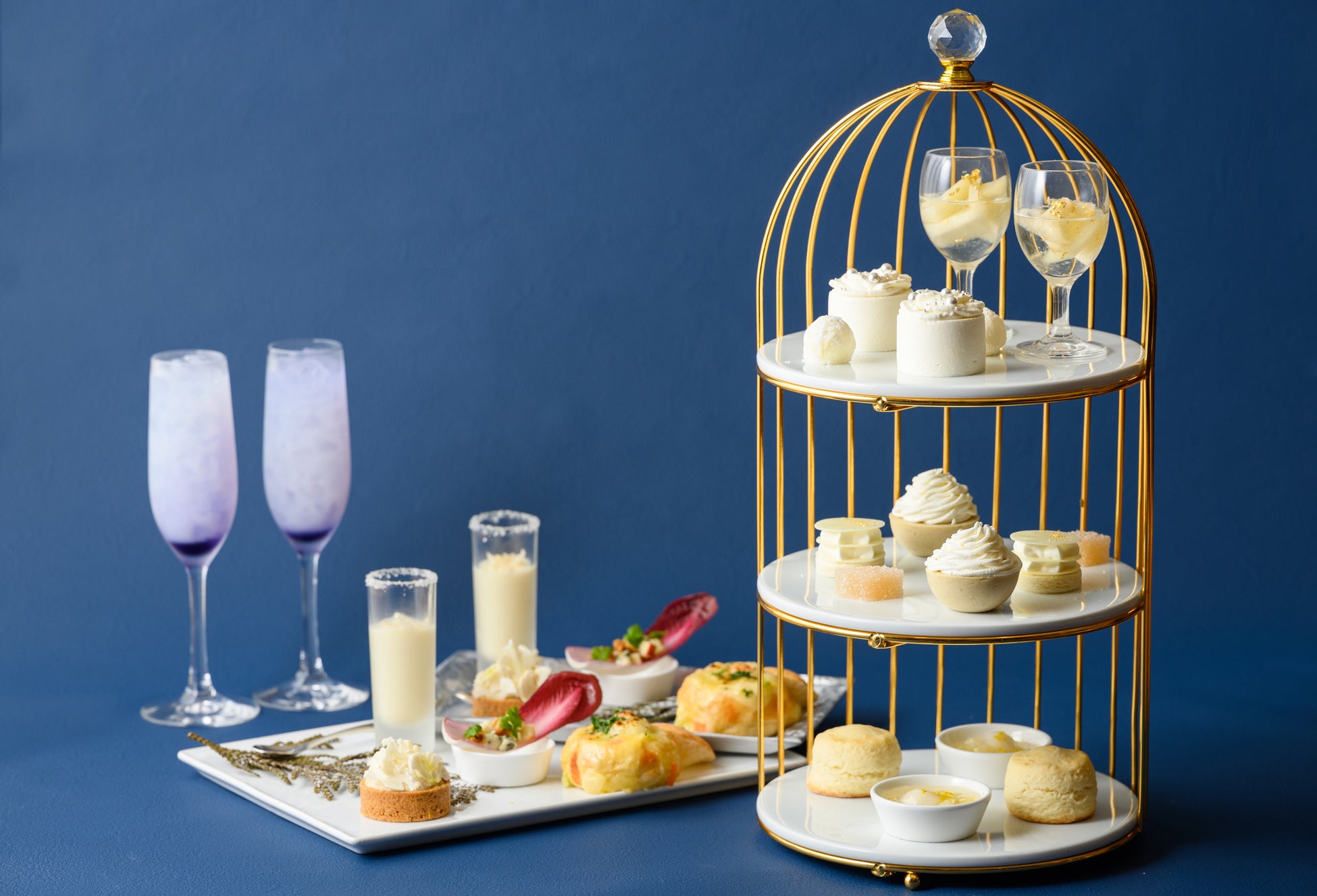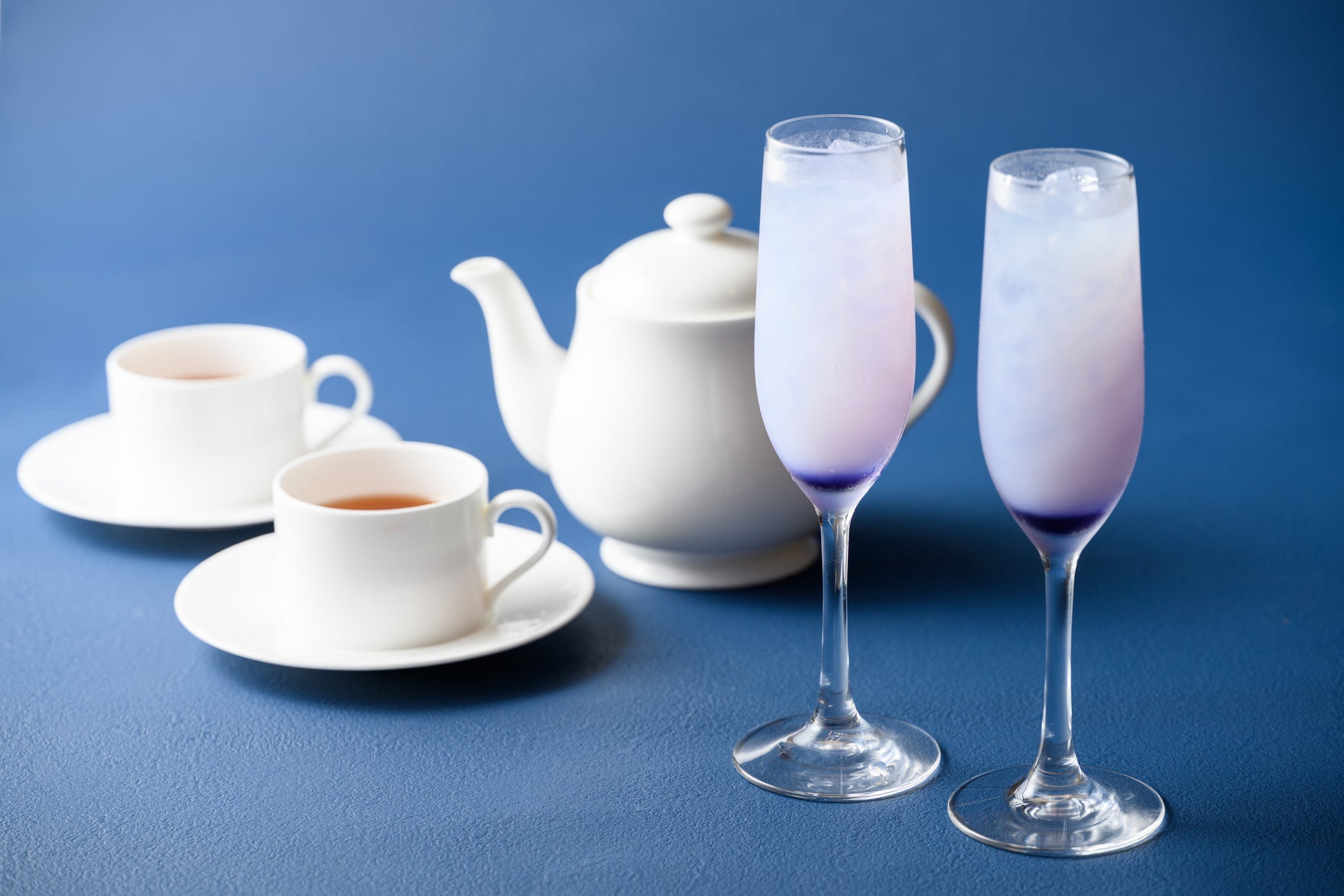 ウエルカムドリンクは、スミレシロップと白い乳酸菌飲料を使い幻想的な白と紫のグラデーションを纏い、雪解けのような爽やかな甘さで心を満たします。これに加え、紅茶鑑定士が選んだ優雅な紅茶や季節の彩りを映すシーズンティーなど、多彩なドリンクもご用意し、格調高い午後のひとときを深めてくれます。