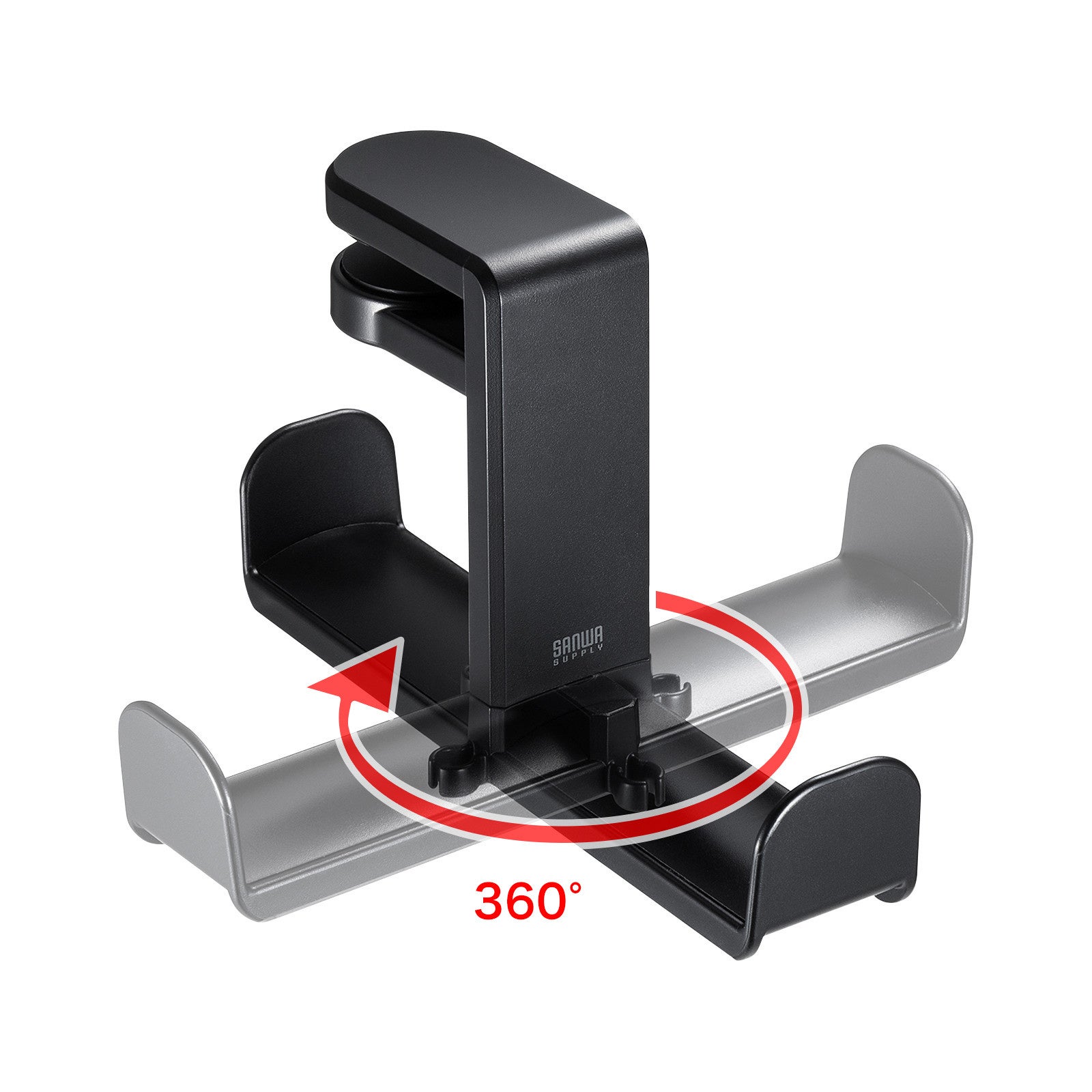 挟むだけで簡単に取り付けできる、2台収納可能なヘッドホンフックを発売