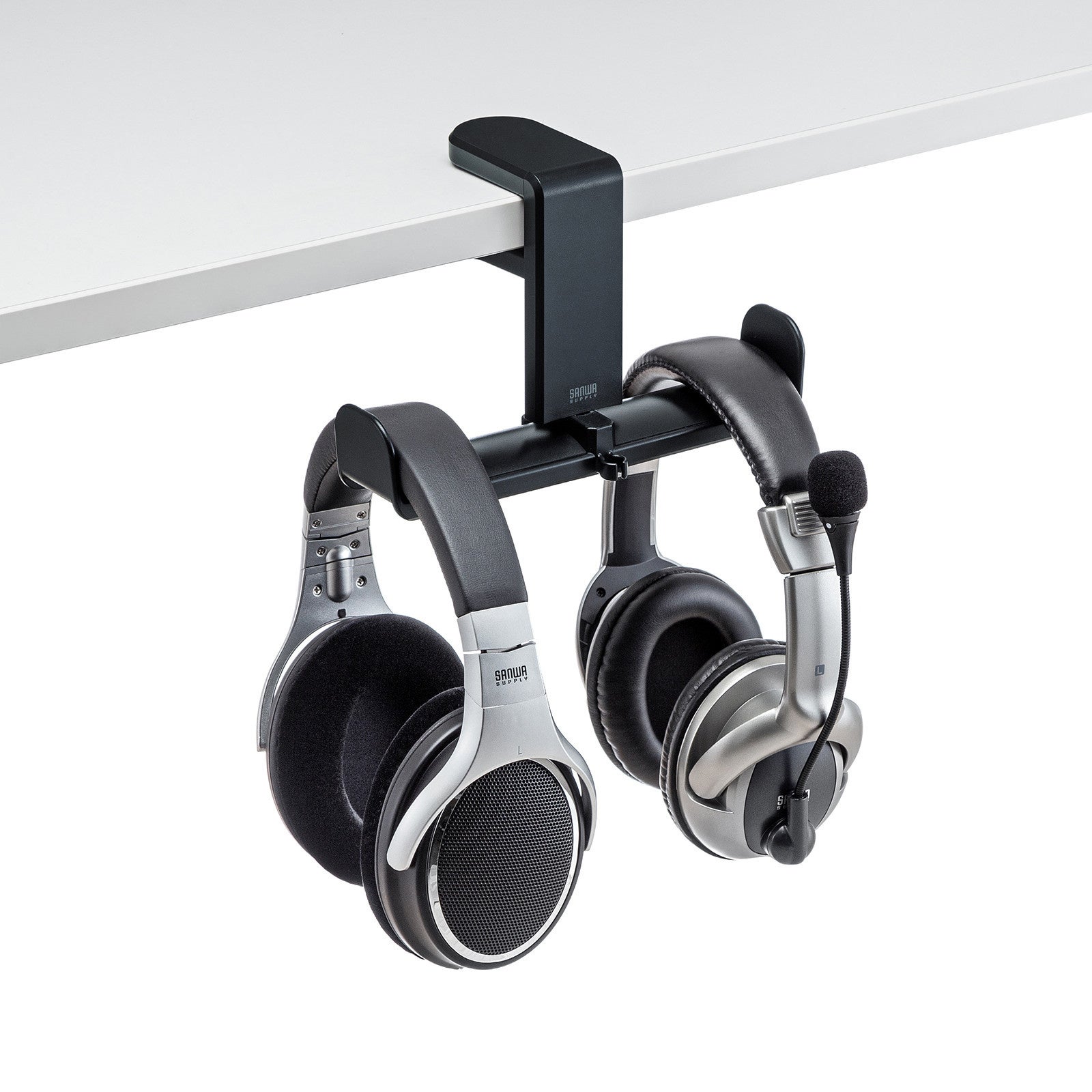 「PDA-STN19BK」は、2台のヘッドホンを引っ掛けて収納できるヘッドホンフックです。