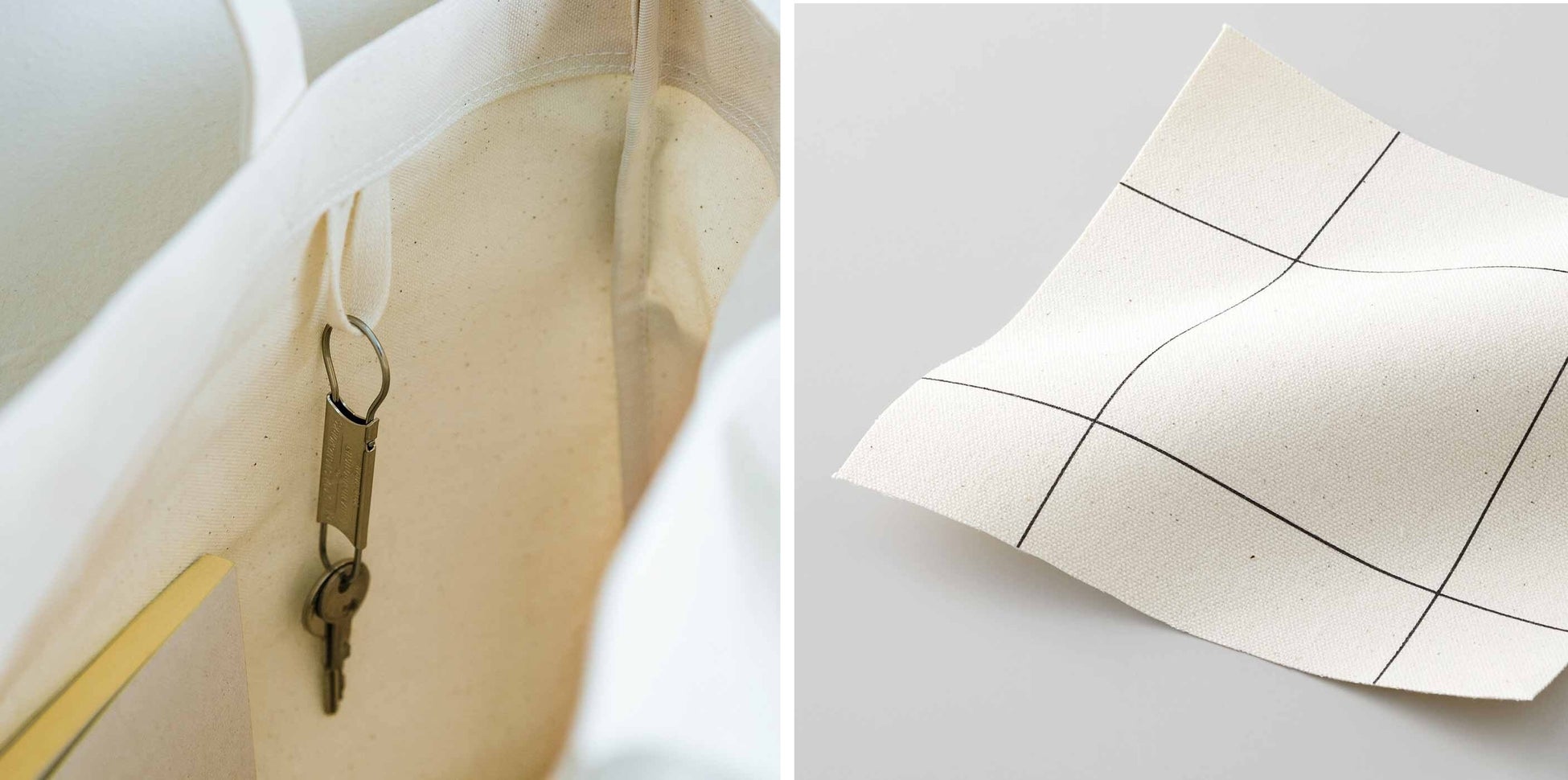 内側にはキーリングを装着できるループも付いています。綿100%の自然な風合いは、使うほどに味わいが増します。