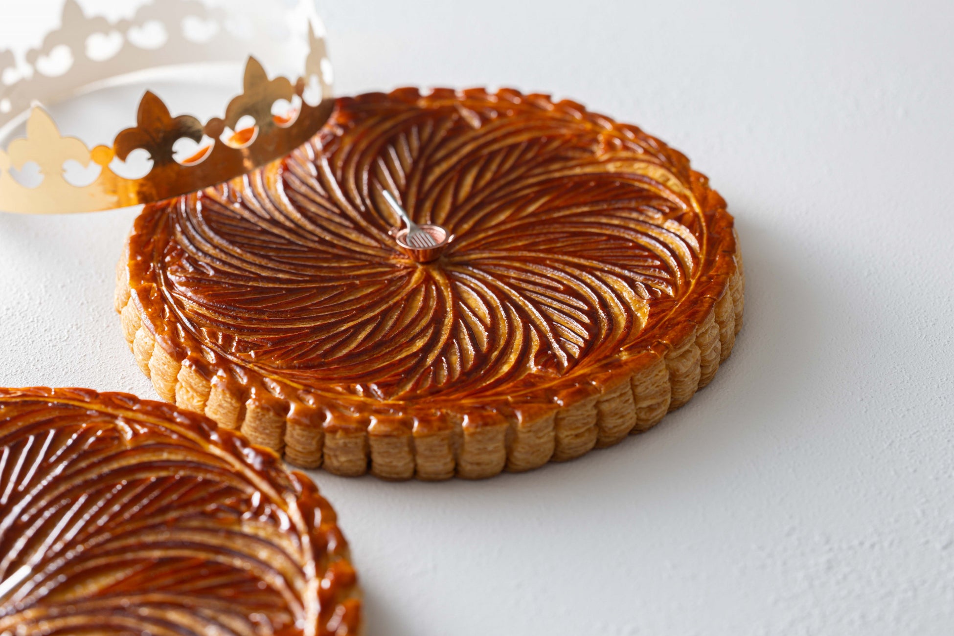 ガレット・デ・ロワは、フランス語で“王様のお菓子”を意味する、新年を祝うフランスの伝統菓子。芳醇な香りの国産バターを使ったサクサクのパイ生地にラム酒がほのかに香るアーモンドクリームを詰め、軽やかに焼き上げました。表面の“レイエ”と呼ばれる太陽を模した模様には、生命力や子孫繁栄、五穀豊穣の願いが込められています。シンプルながらもパティシエの技が際立つ逸品です。フェーブをランダムに1つと紙製の王冠をお付けします。