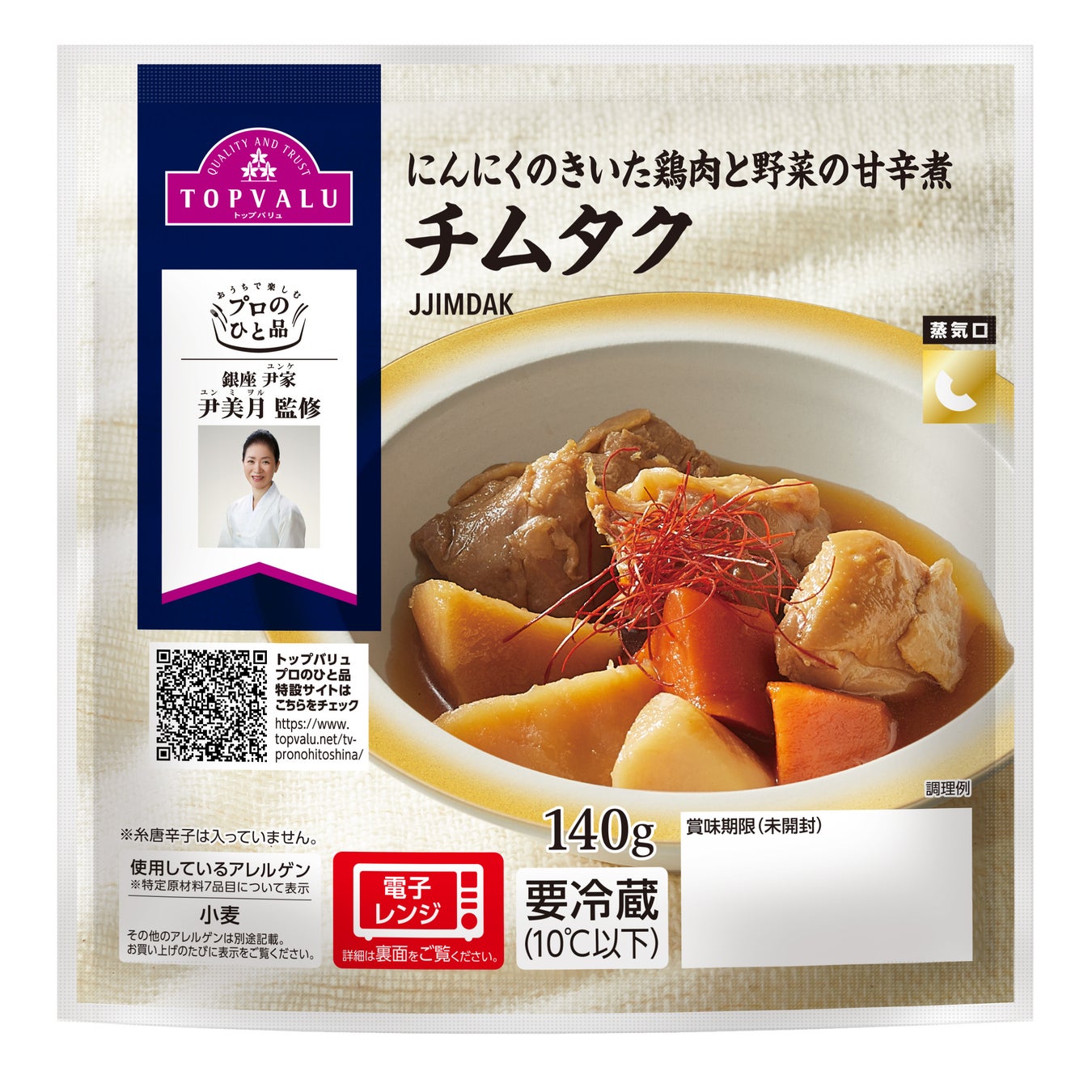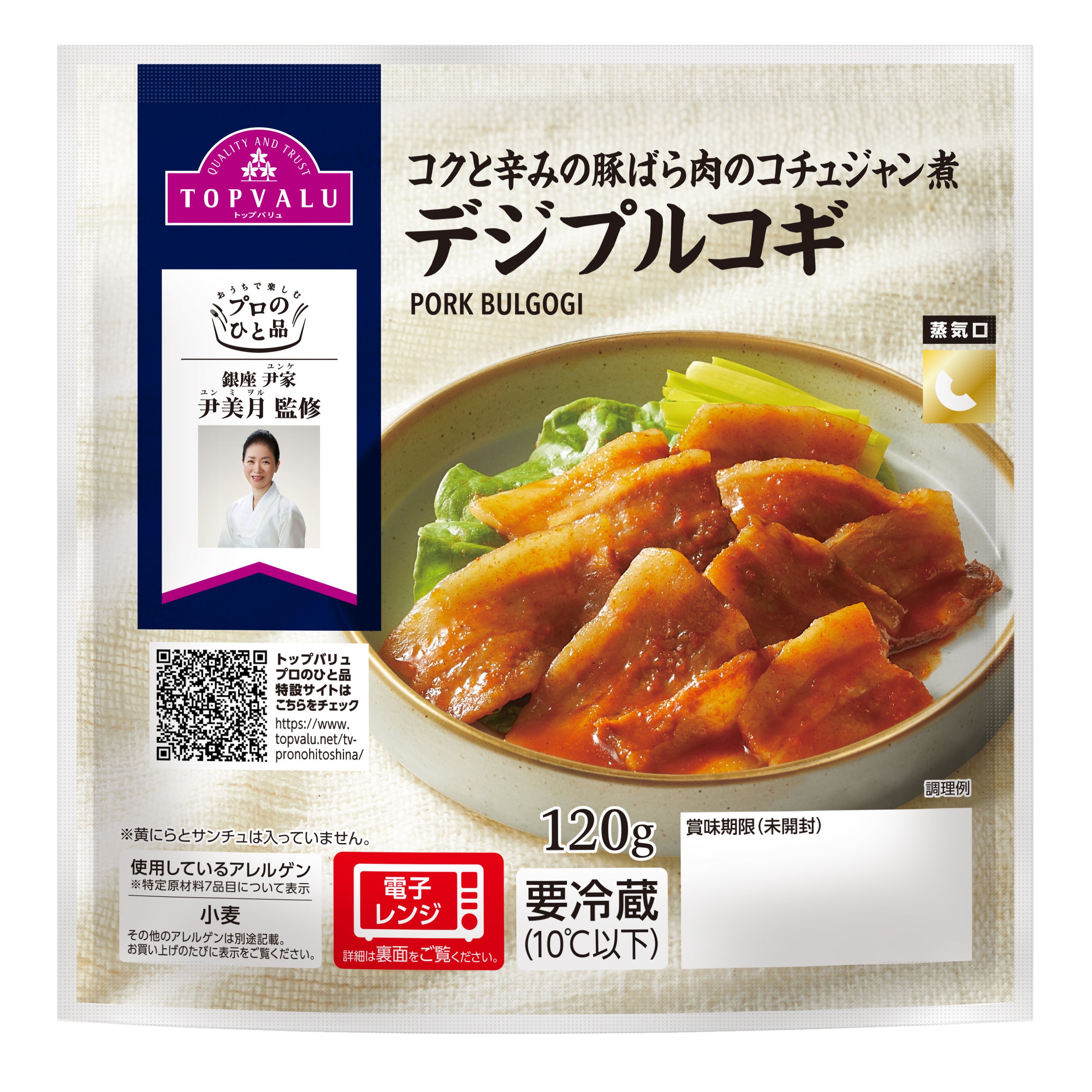 近年、国内のMZ世代※2)を中心に、“第3次韓流ブーム”と呼ばれるほど韓国グルメやコスメ、ファッションへの人気が高まっており、「もっと本格的な韓国料理を自宅でも手軽に食べたい」といったお客さまの声を多くいただいています。こうした声にお応えし、「トップバリュ プロのひと品」シリーズに新たに、韓国の伝統食文化を保存・継承するために「韓国農林水産部」が指定する、食品分野における人間文化財『銀座尹家(ユンケ)』尹美月(ユンミヲル)シェフによる監修商品を加えます。豚バラ肉をコチュジャンで煮込んだ「デジプルコギ」、鶏肉と野菜を甘辛く煮込んだ「チムタク」の2種類を展開します。