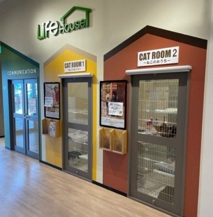 本施設では、最大7頭の保護猫が入居することが可能であり、越谷市保健所をはじめ、関東地域にある複数の動物愛護センターや保健所から保護猫の引き取りを行います。広域から多くのお客さまが来訪する大型商業施設内にある強みを活かし、より一層の譲渡促進と、適正飼養の発信を目指します。