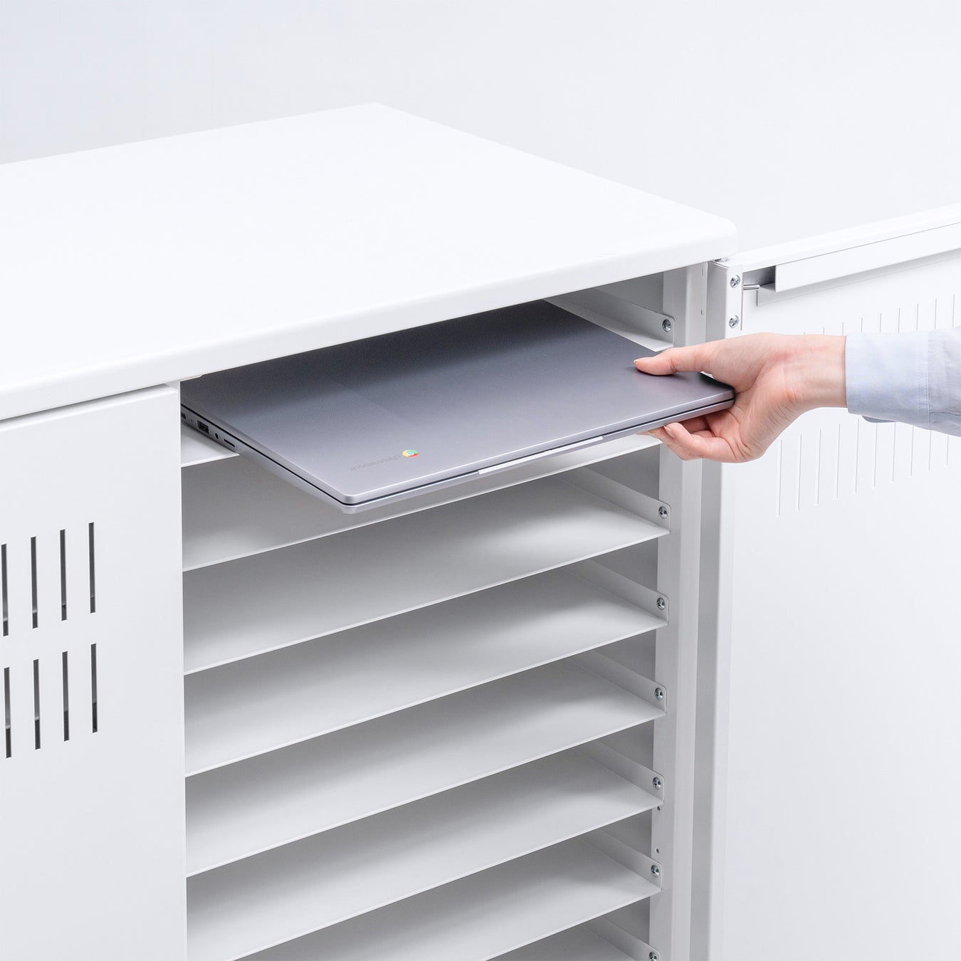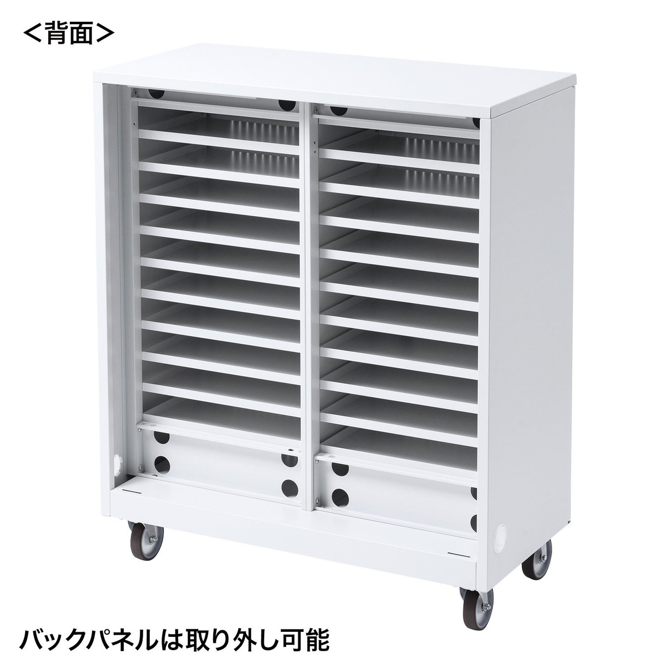 「CAI-CAB66W」は11台、「CAI-CAB67W」は22台のノートパソコンを収納できます。