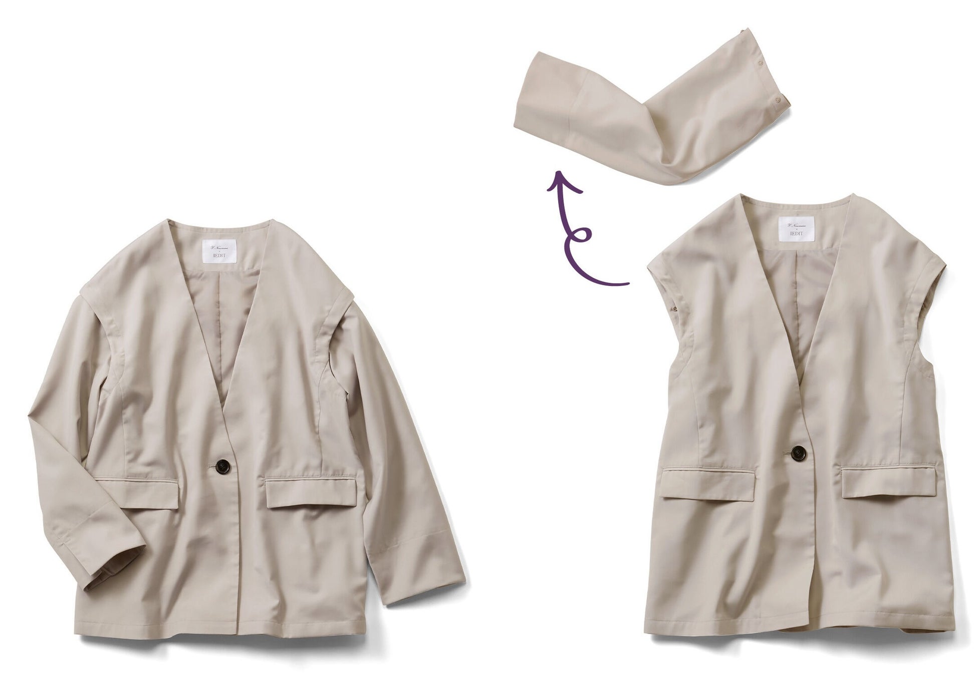 【NEW】野々村友紀子さん×IEDIT[イディット] 一枚持ってたら間違いない! 「気温」と「気分」で袖がちぎれるジャケット〈グレージュ〉