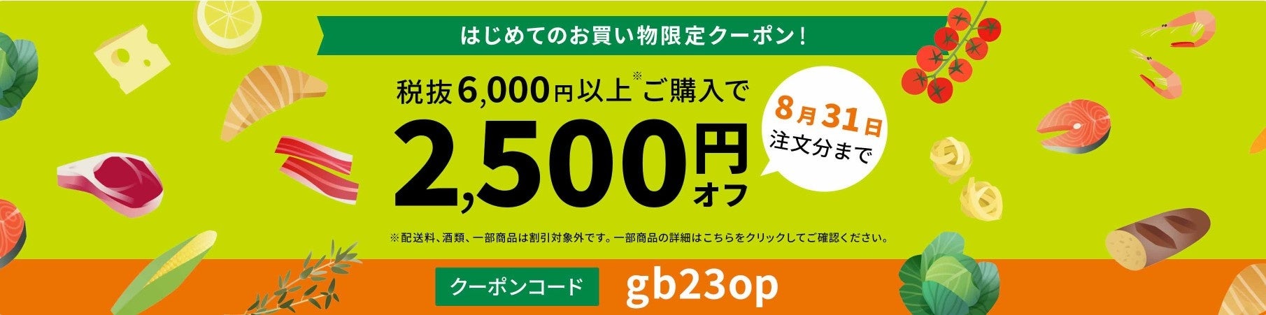 グリーンビーンズでは、グランドオープンを記念し、初回の商品購入時に利用できる2,500円のクーポンを配布するキャンペーンを実施します。