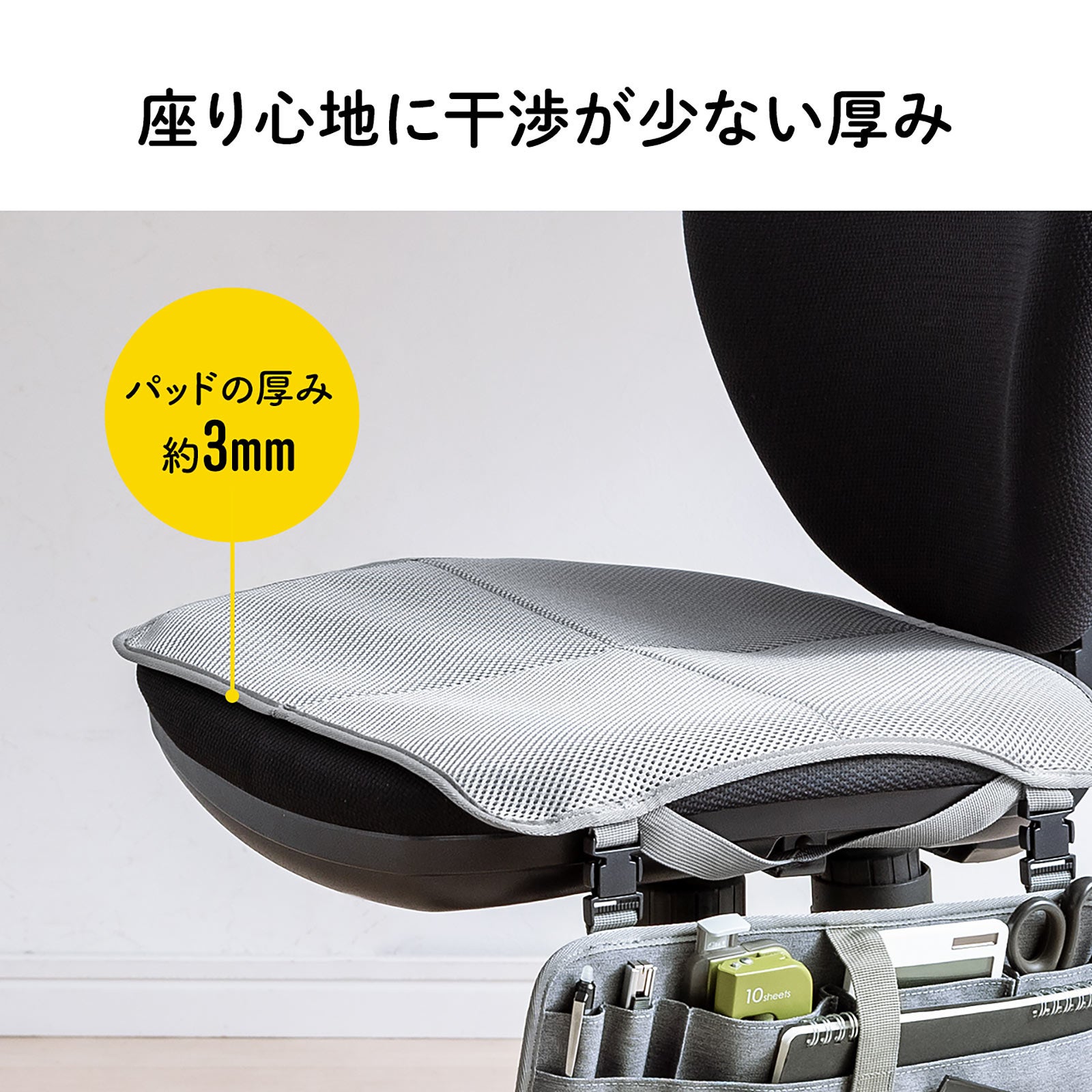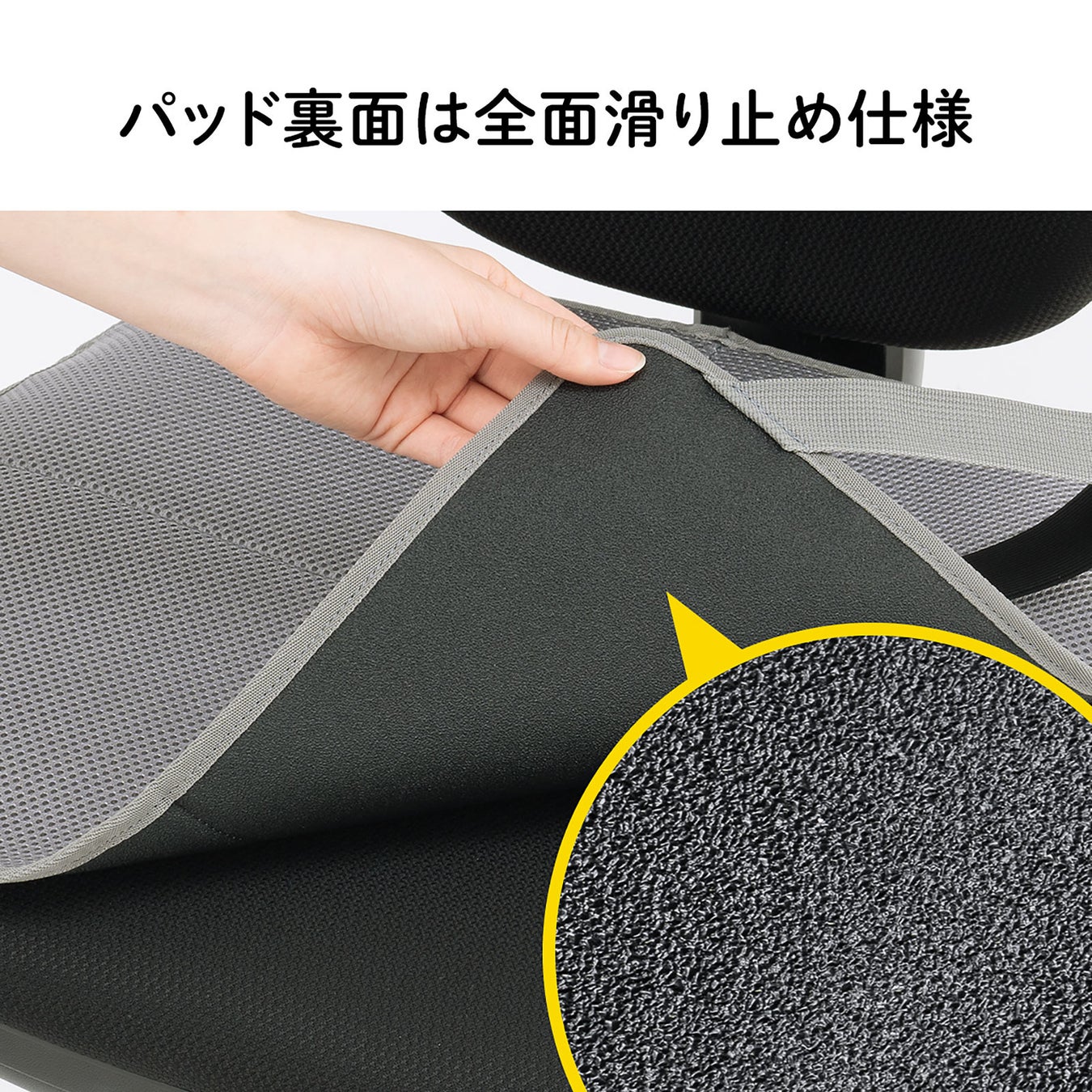 パッドの裏面は、全面滑り止め仕様で、座面から滑りにくくなっています。
