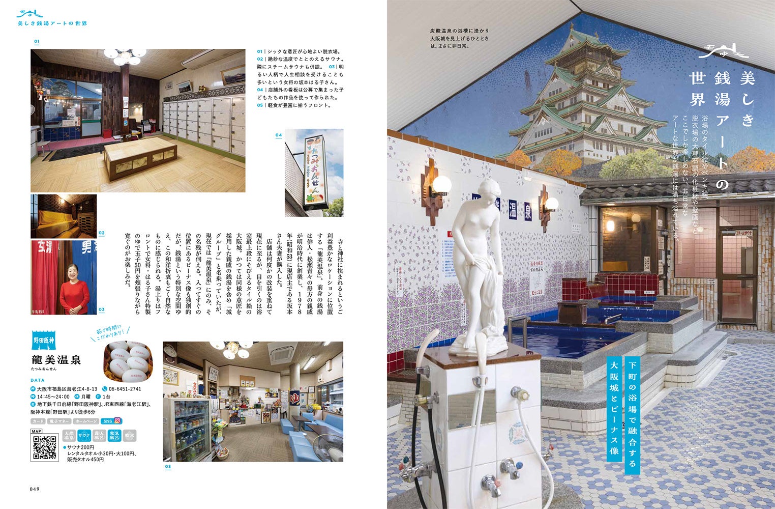 そんな愛すべき大阪の“お風呂屋さん”を「老舗銭湯ストーリー」「古きよき銭湯を訪ねて」「美しき銭湯アートの世界」「眺めのいい露店風呂へ」などのテーマ別に厳選して紹介し、データ欄も駐車場やサウナの有無や天然温泉や軟水の使用など、銭湯好きが知りたい情報をしっかり網羅したこの一冊。この年末年始は、大阪の銭湯にひとっ風呂浴びに行きませんか?