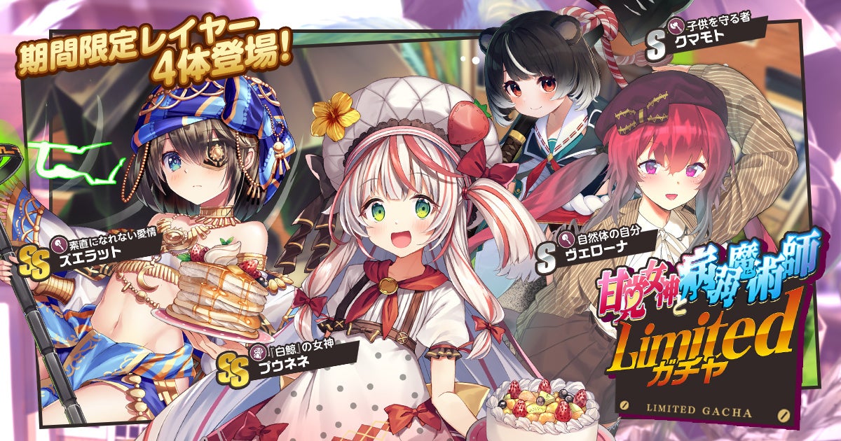 SSプウネネ、SSズエラット、Sクマモト、Sヴェローナの新レイヤーが排出されるガチャになります。
