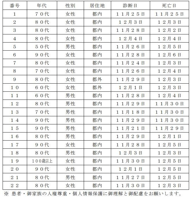 都内で新型コロナウイルスに感染した方が死亡されましたのでお知らせします。
