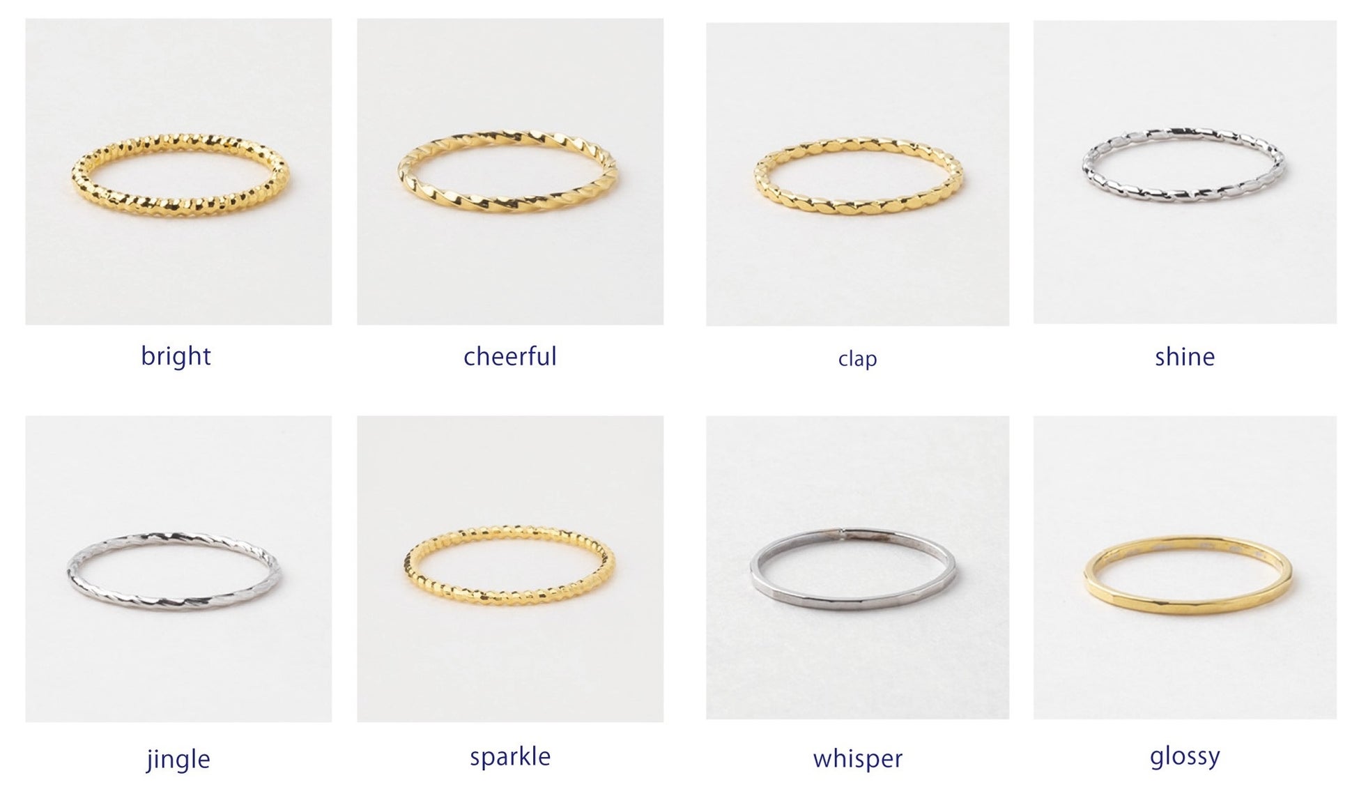 子供の頃に憧れた星空を、指先に。小さな星屑を集めたようなリングは、まるで夜空を切り取ったみたい。繊細な輝きとディテールの違いを重ね着けで楽しめるリングコレクション。