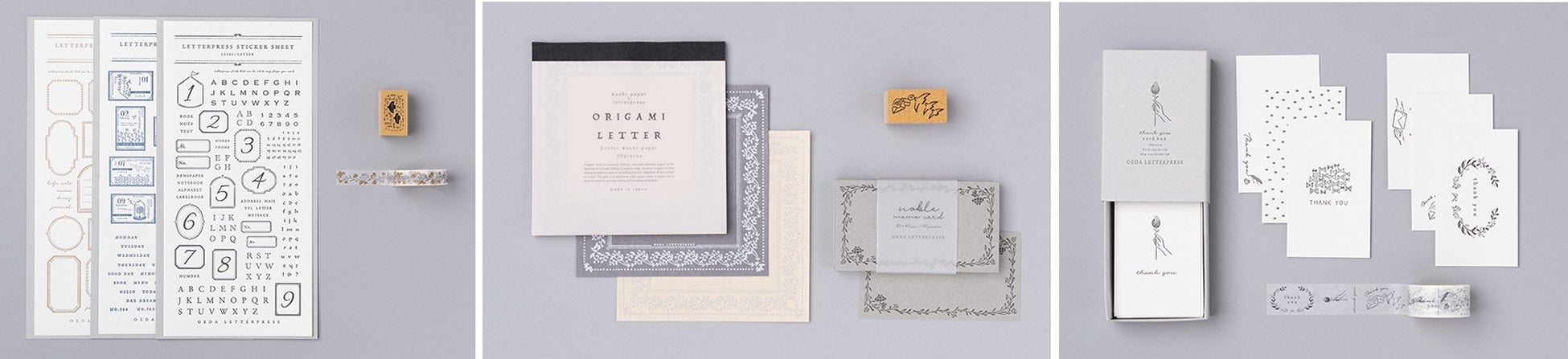 印字された文字の凹凸感やインクのにじみ、かすれなど、味のある仕上がりが魅力の活版印刷。その活版印刷によるペーパーアイテムが「書きたいシーン」別にセレクトされている特別なセットです。ちょっとひと言、さらりと一筆、しっかりお手紙など、気持ちに寄り添うラインナップになっています。カット線入りメモブックや、エンボス感がかわいい厚みのあるメッセージカード、レターセットなどバリエーション豊かな紙文具をセットで届きます。